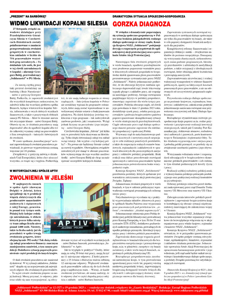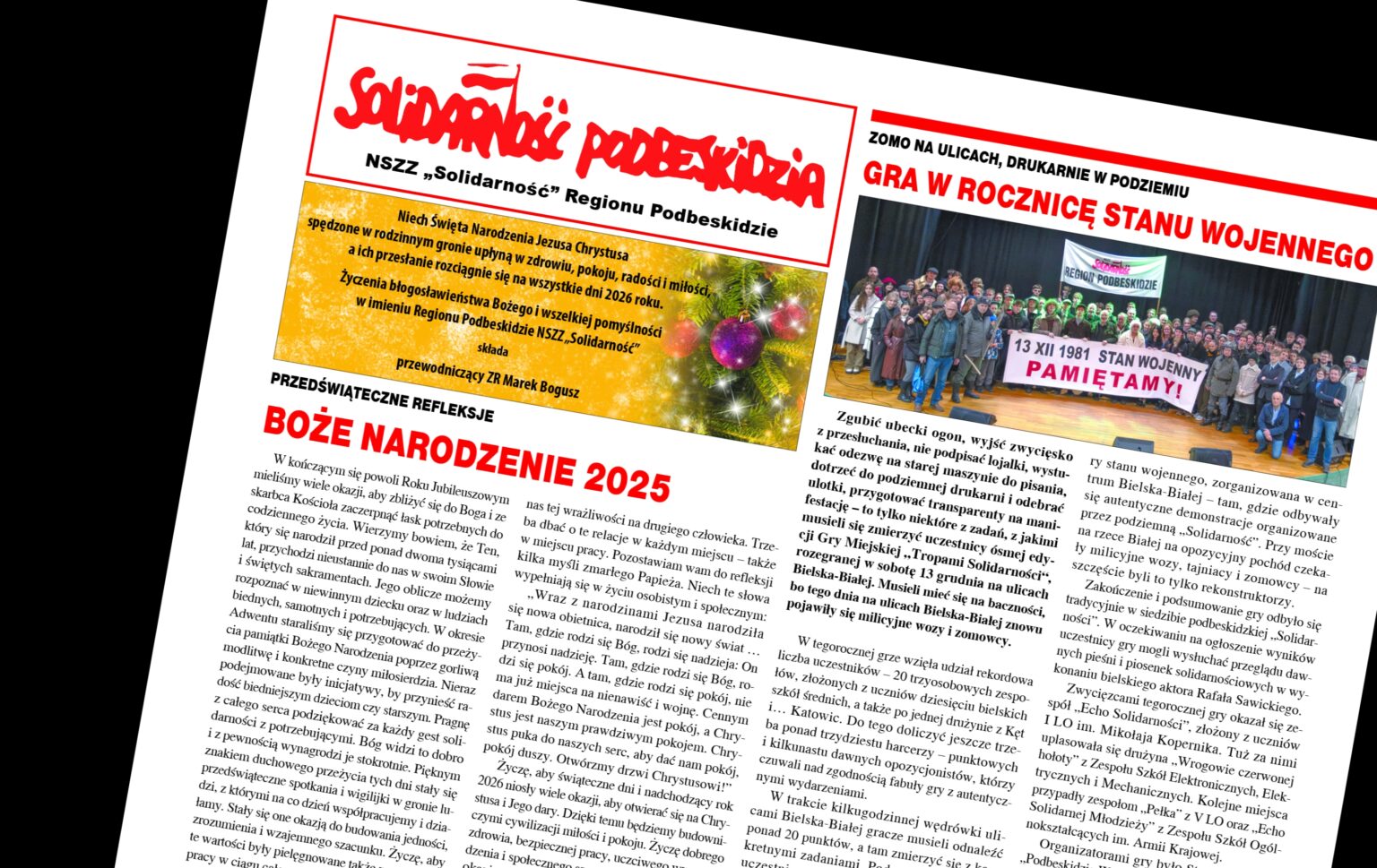 W najnowszym numerze bezpłatnego miesięcznika „Gazeta Beskidzka”, który ukazał się w piątek 19 grudnia 2025 roku, znajdziemy nowy numer „Solidarności Podbeskidzia”, a w nim…