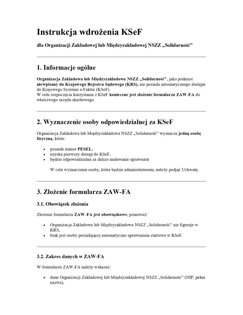 instrukcję wdrożenia KSeF