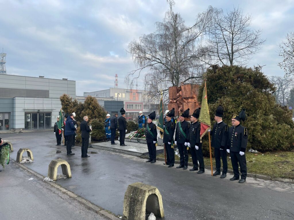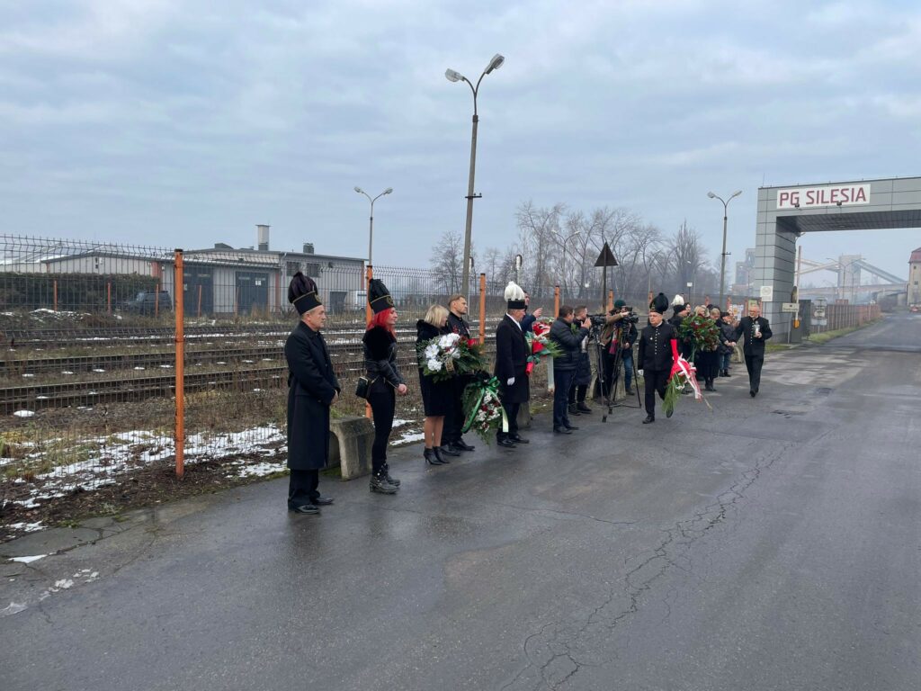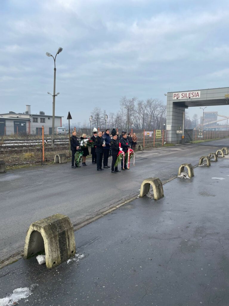 Delegacja złożyła kwiaty pod pomnikiem przed Kopalnią Silesia, oddając hołd górnikom, którzy stracili życie w tragicznych wydarzeniach związanych z kopalnią. ![]()