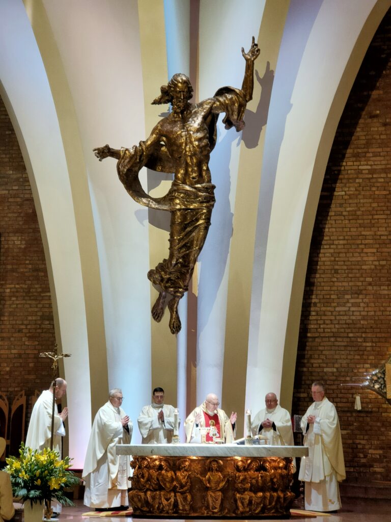 Eucharystii przewodniczył emerytowany wieloletni proboszcz tej parafii ks. prałat Jerzy Fryczowski, a w koncelebrze uczestniczyli m.in. diecezjalny duszpasterz ludzi pracy ks. prałat Józef Oleszko, ks. prałat Teodor Suchoń, który dwa dni wcześniej został uhonorowany przez związkowców tytułem „Zasłużony dla podbeskidzkiej Solidarności”, a także obecny proboszcz tej parafii ks. Piotr Borgosz.