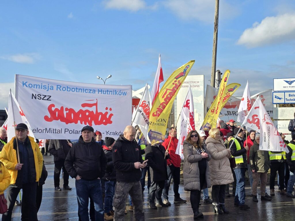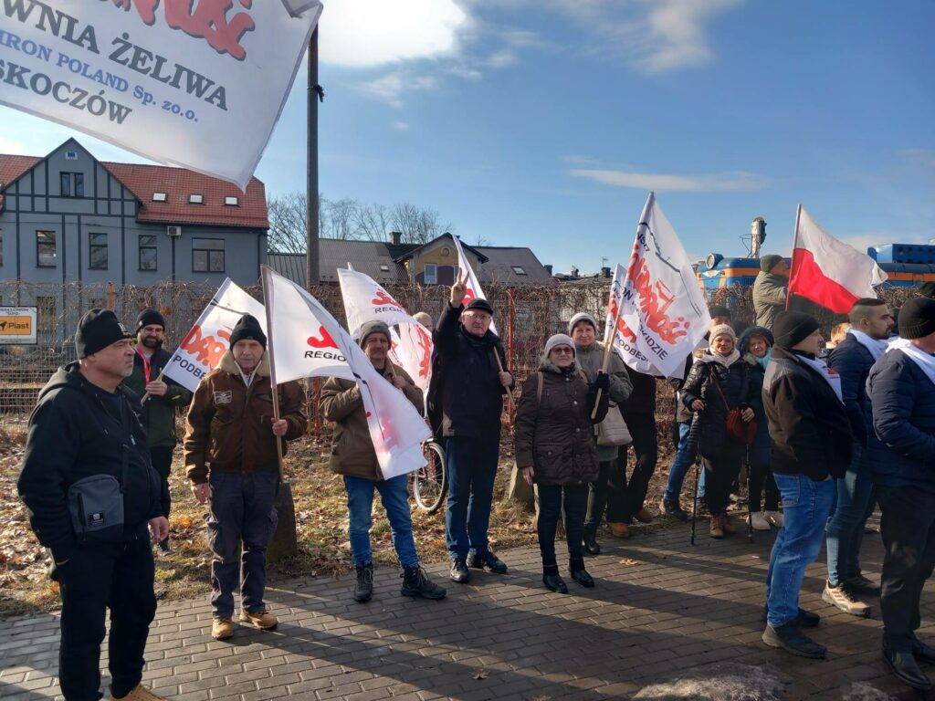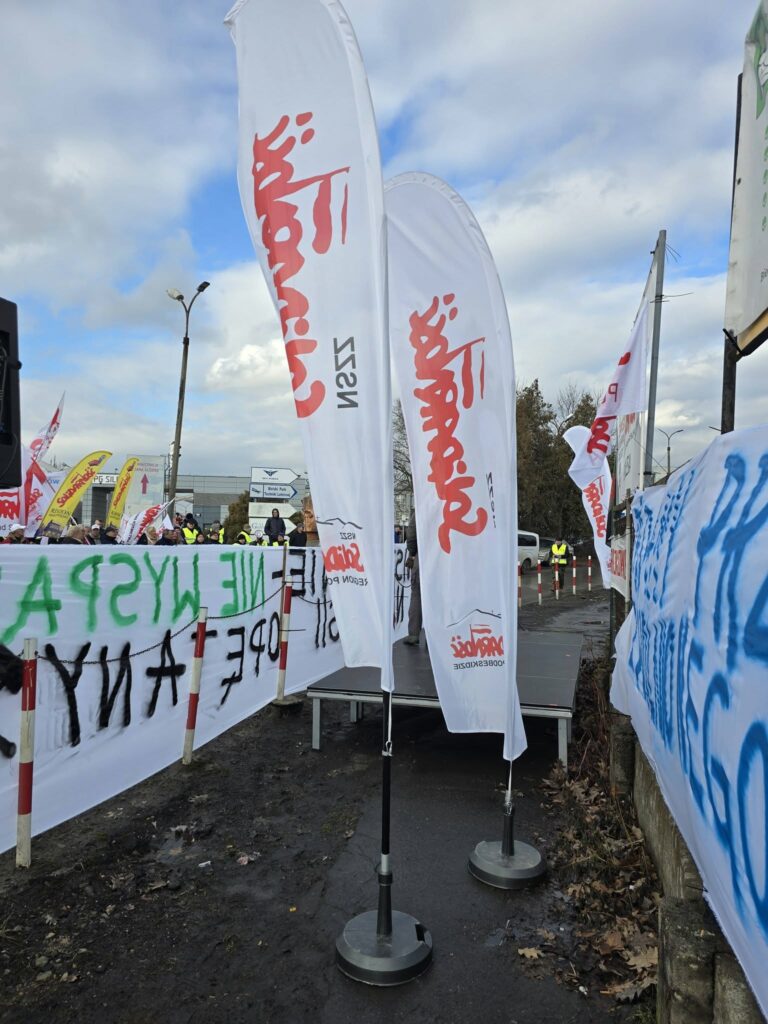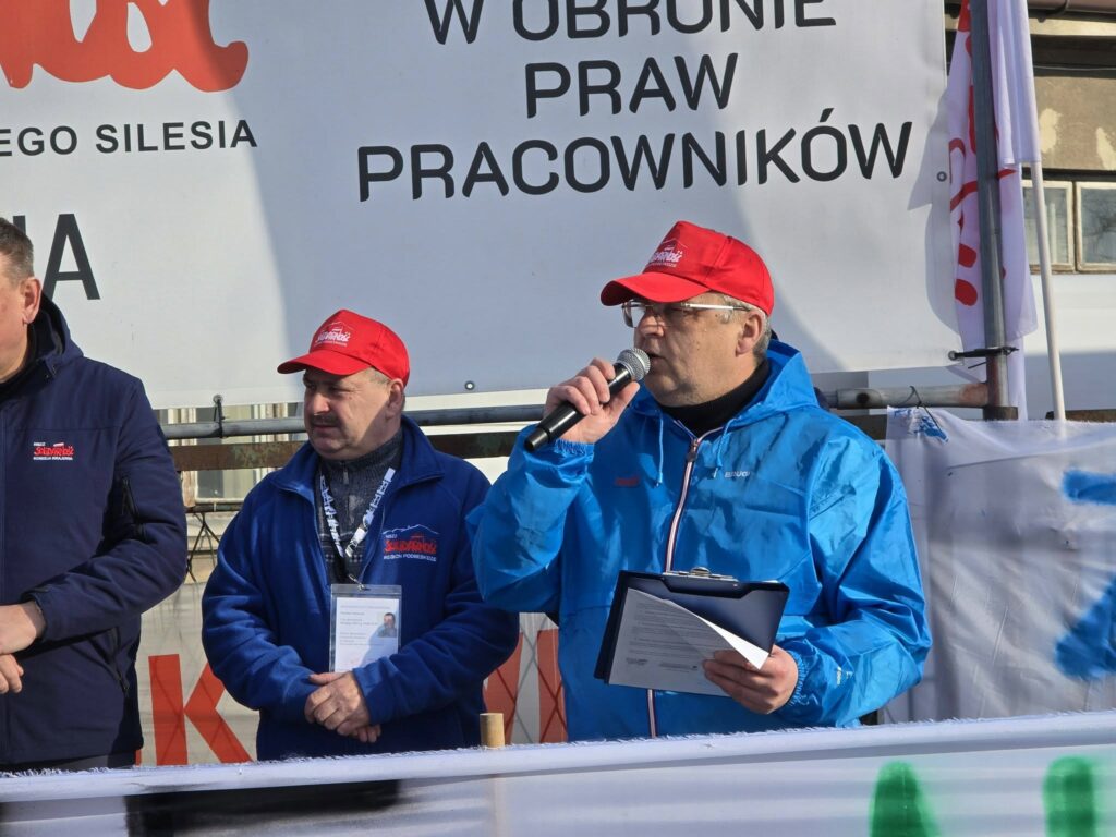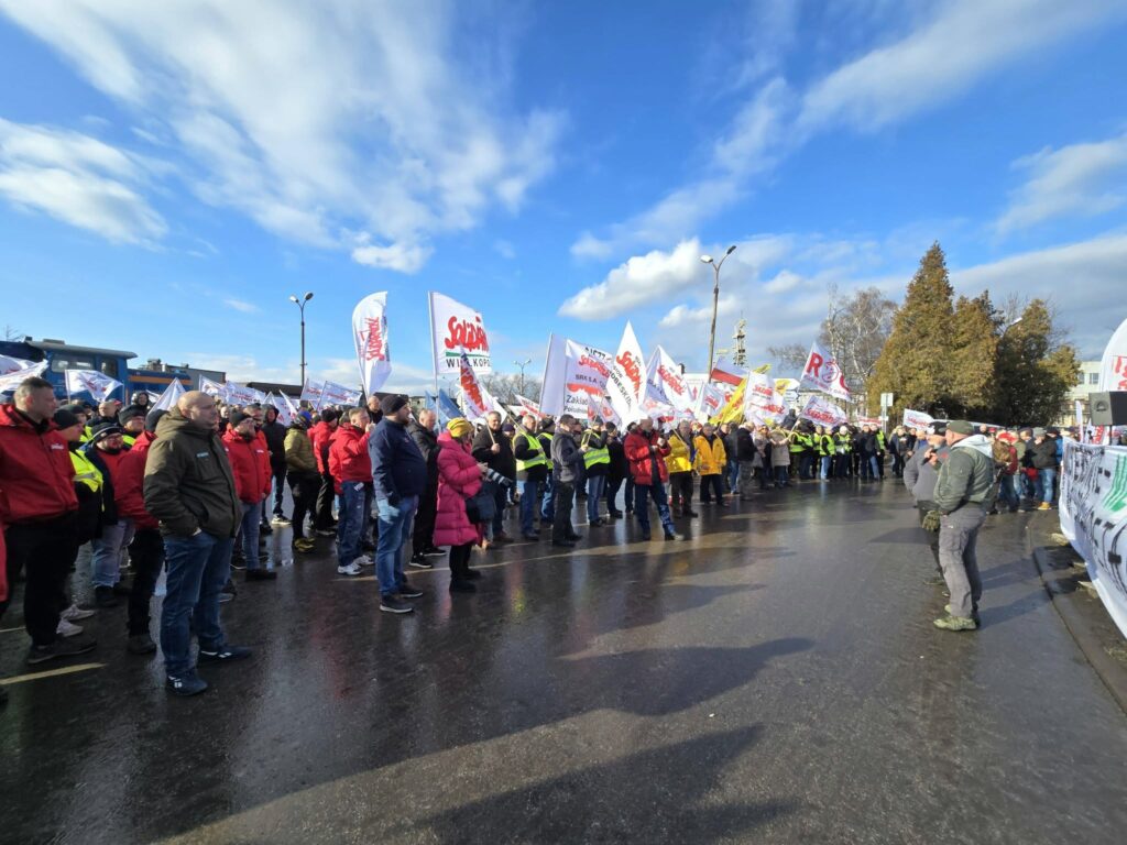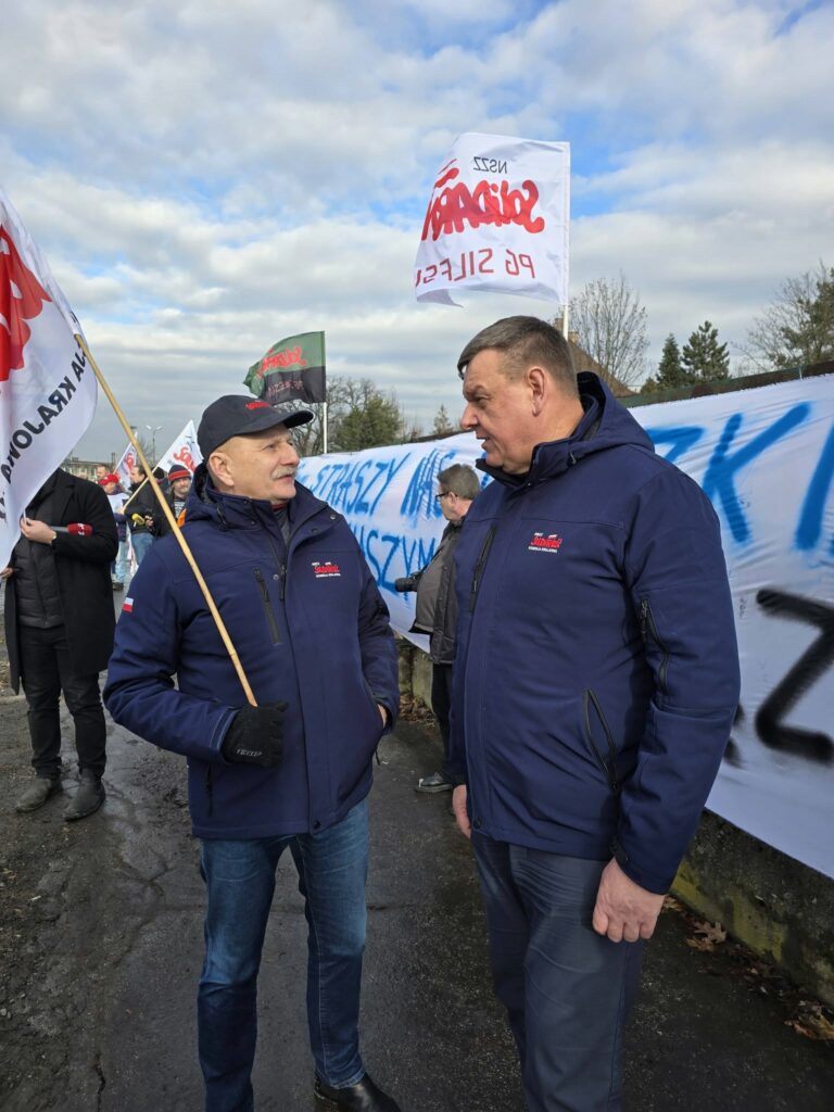 Do protestu dołączyli przedstawiciele Solidarności z całego kraju, pokazując, że w obliczu zagrożenia miejsc pracy liczy się jedność i wspólne działanie.
