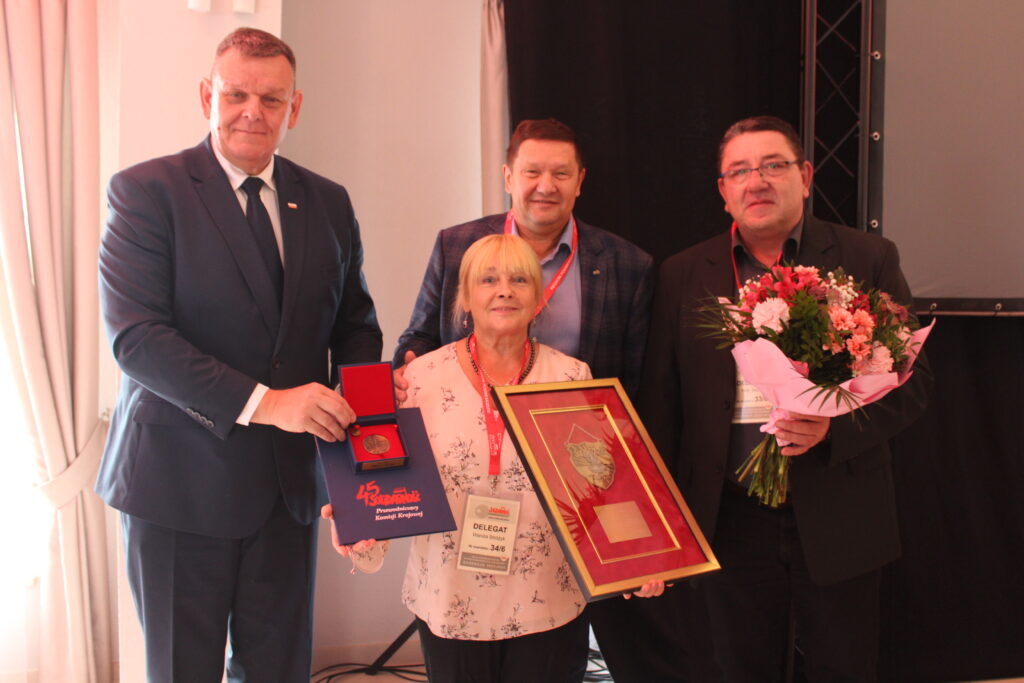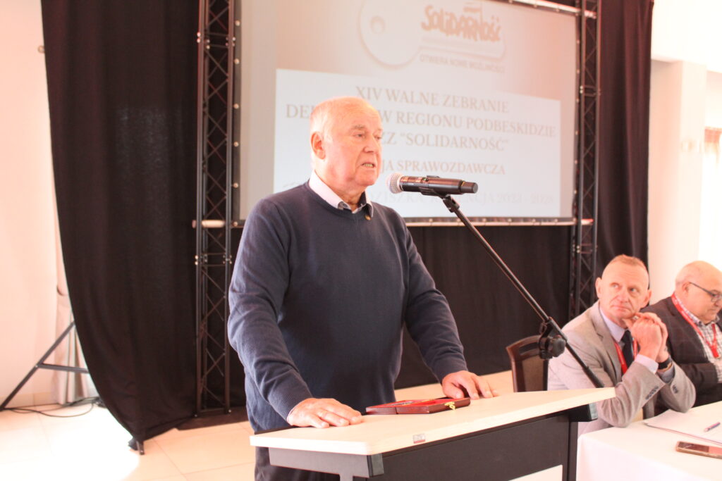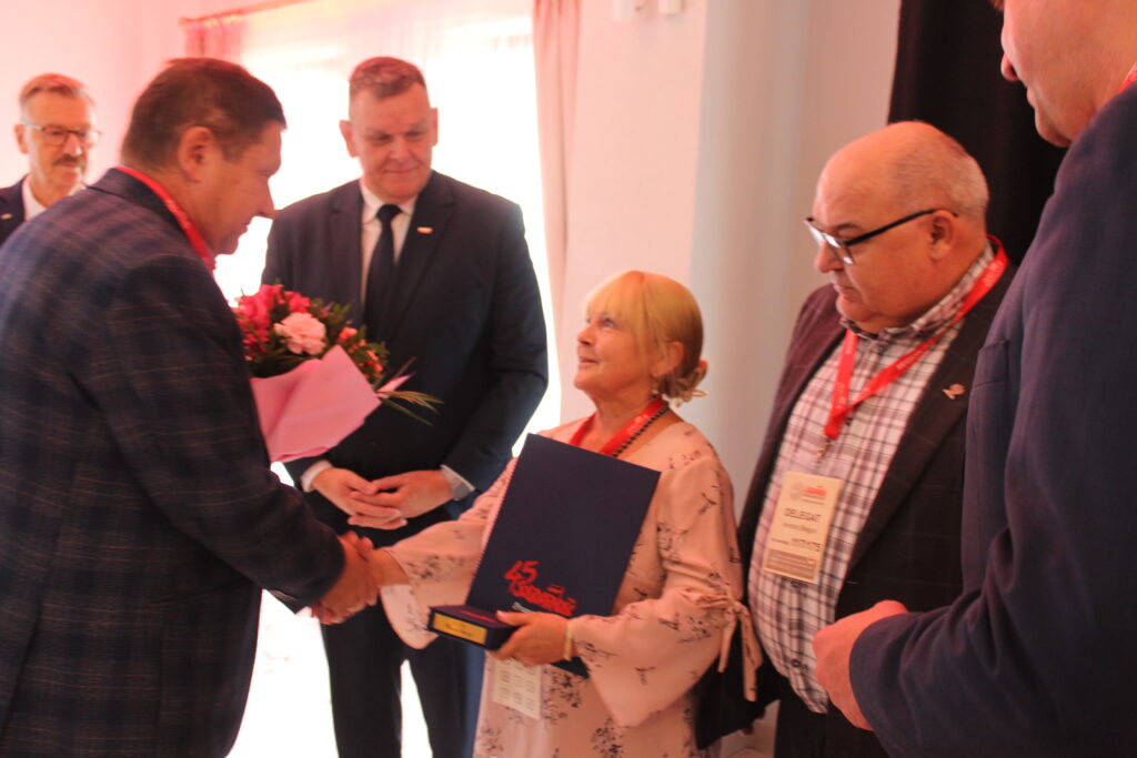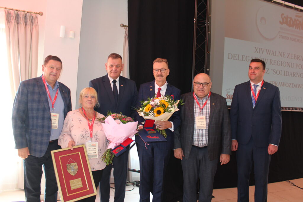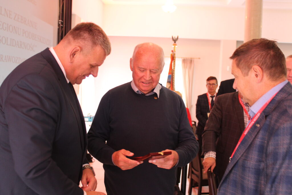 W trakcie obrad nie zabrakło, jak już wcześniej wspomnieliśmy, odświętnych akcentów. Długoletni związkowcy Wanda Stróżyk i Stanisław Sołtysik otrzymali odznaki „Zasłużonych dla NSZZ Solidarność”. Tytułami „Zasłużonych dla podbeskidzkiej Solidarności” uhonorowani zostali Czesław Chrapek, Stanisław Sołtysik, Wanda Stróżyk, Mirosław Styczeń, Bogdan Szozda i Ewa Żak.