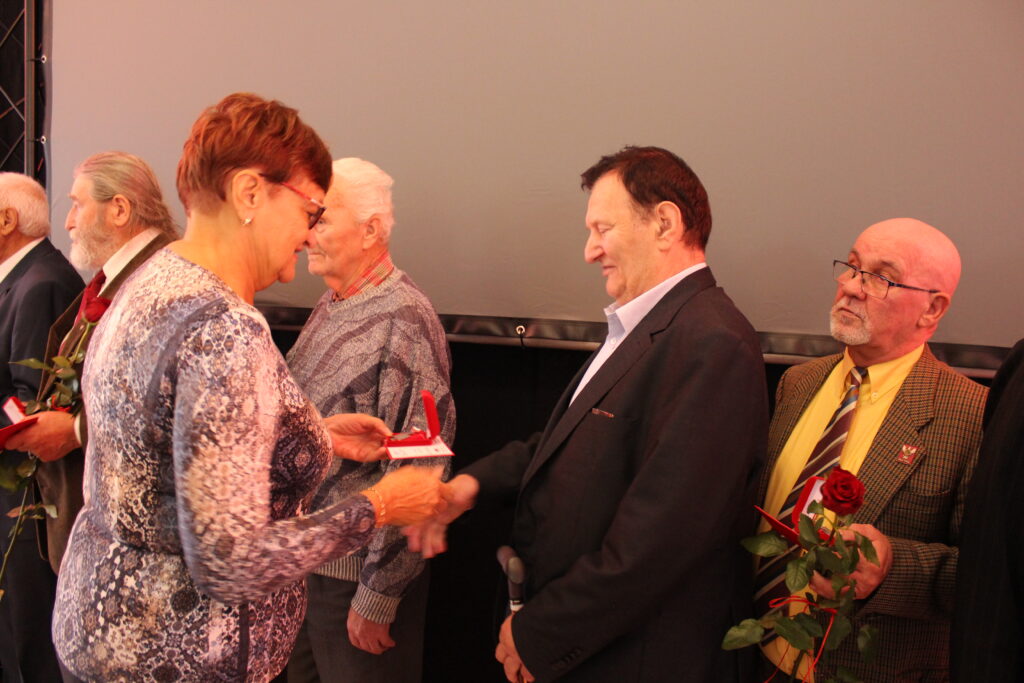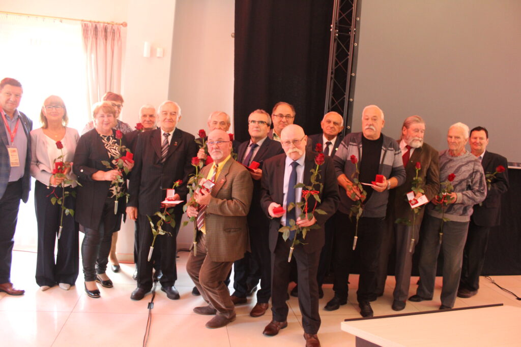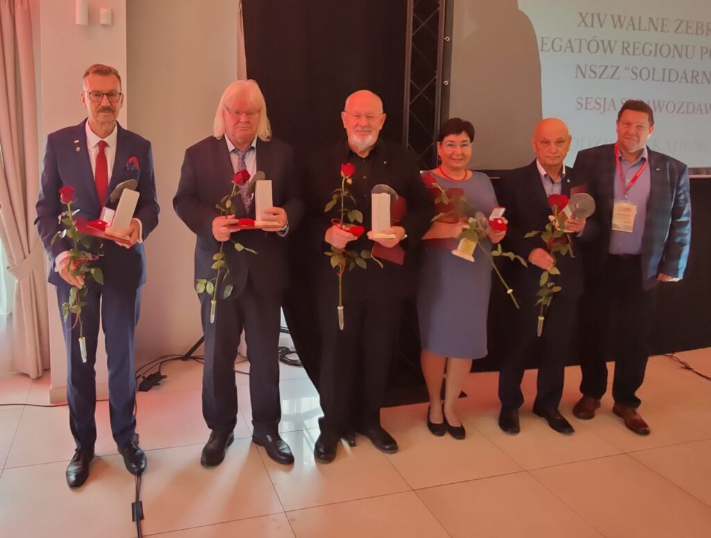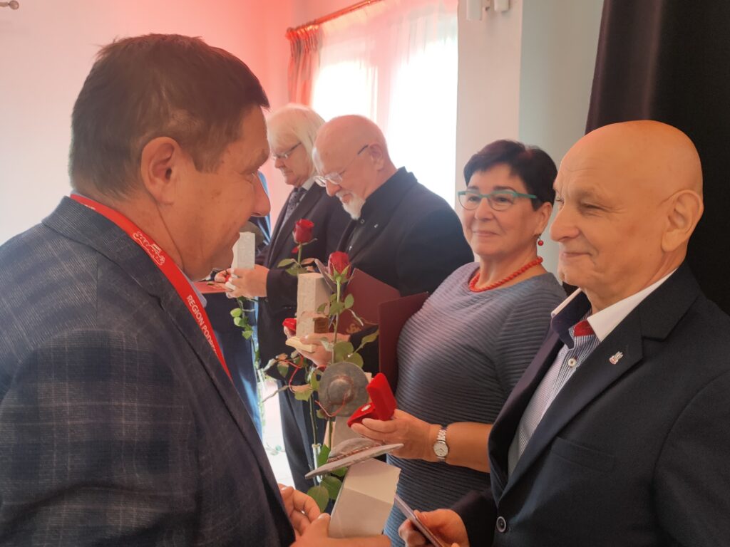 W trakcie obrad nie zabrakło, jak już wcześniej wspomnieliśmy, odświętnych akcentów. Długoletni związkowcy Wanda Stróżyk i Stanisław Sołtysik otrzymali odznaki „Zasłużonych dla NSZZ Solidarność”. Tytułami „Zasłużonych dla podbeskidzkiej Solidarności” uhonorowani zostali Czesław Chrapek, Stanisław Sołtysik, Wanda Stróżyk, Mirosław Styczeń, Bogdan Szozda i Ewa Żak.