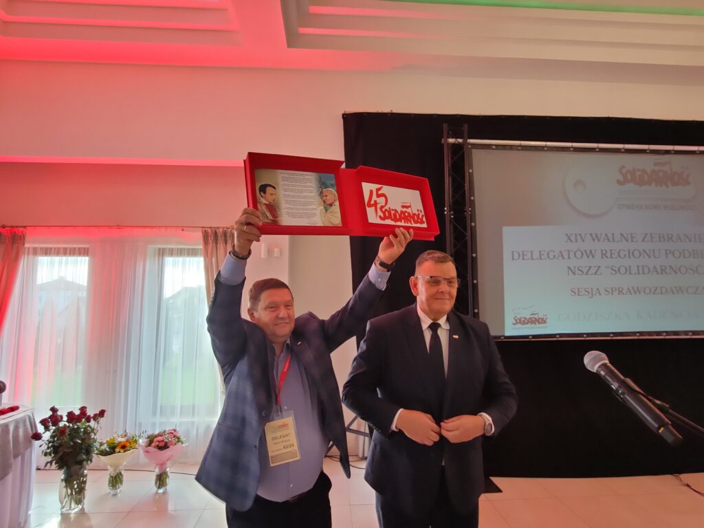 Wiceprzewodniczący Komisji Krajowej Grzegorz Adamowicz przekazał też szefowi Regionu Podbeskidzie Markowi Boguszowi jubileuszowy upominek: flagę 45-lecia „Solidarności” wraz z wizerunkami św. Jana Pawła II i błog. Ks. Jerzego Popiełuszki. Wizerunek Patrona „Solidarności” ks. Jerzego Popiełuszki otrzymał także ks. prałat Józef Oleszko, a okolicznościowe medale 45-lecia NSZZ „Solidarność” trafiły do wieloletniego przewodniczącego podbeskidzkiej „Solidarności” Marcina Tyrny oraz byłego szefa Sekretariatu Górnictwa i Energetyki Kazimierza Grajcarka.