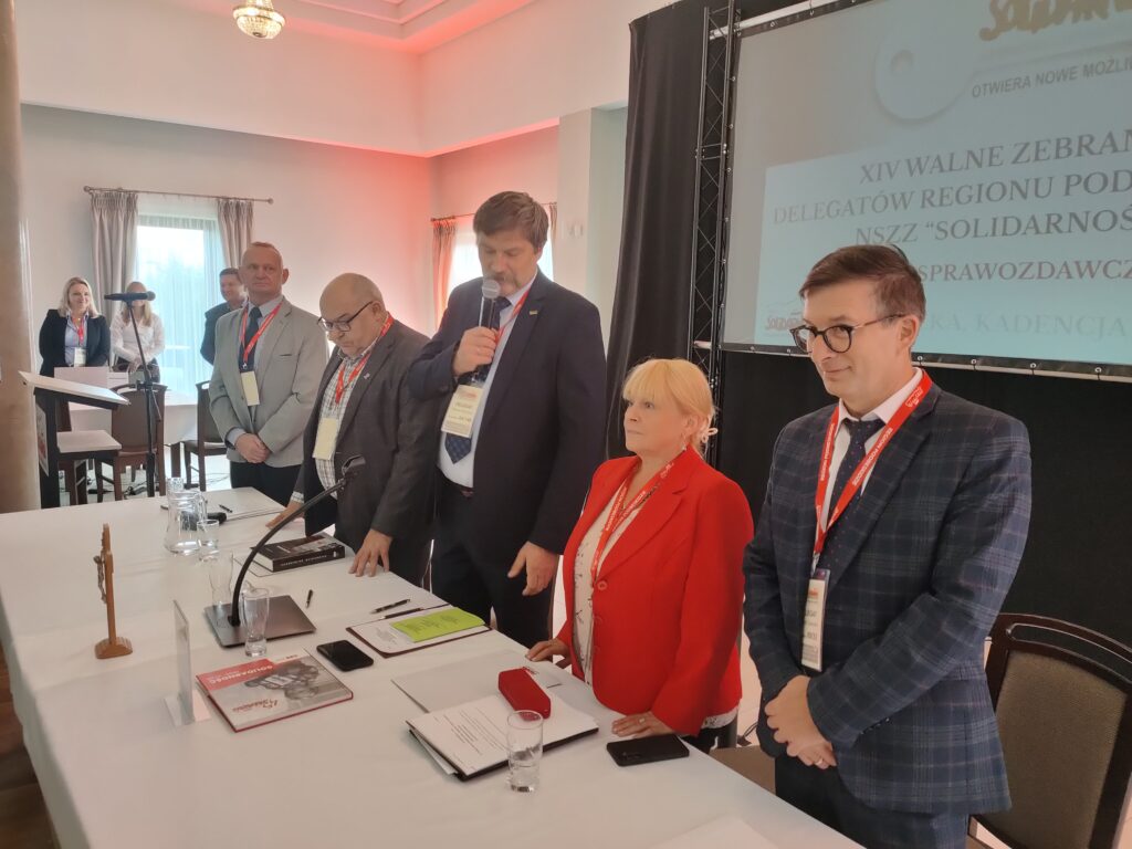 Krytyczna diagnoza obecnej sytuacji w Polsce znalazła się też w wystąpieniu Grzegorza Adamowicza („Kroją nas plasterkami jak salami: Lasy Państwowe, energetyka, Poczta Polska, PKP Cargo…”), jak również w głosach uczestników dyskusji. Owocem tej debaty było stanowisko przyjęte przez delegatów. Czytamy w nim m.in.: „Od dłuższego czasu obserwujemy niepokojące zjawiska na rynku pracy – zarówno w skali kraju jak i na Podbeskidziu. Zakłady pracy, zwłaszcza te energochłonne lub związane z branżą motoryzacyjną, kończą swą działalność czy też ograniczają zatrudnienie. Firmy, które jeszcze funkcjonują, próżno oczekują wsparcia od instytucji państwowych /…/. Ogromna część obecnych problemów i przyszłych zagrożeń wiąże się z polityką Europejskiego Zielonego Ładu. Dlatego jesteśmy przekonani, że działalność naszego związku, mająca na celu utrzymanie miejsc pracy i zapewnienie godnej płacy, musi być połączona z działaniami mającymi na celu zahamowanie wprowadzania zapisów polityki klimatycznej Unii Europejskiej”. Związkowcy przyjęli też stanowisko popierające akcje protestacyjne prowadzone przez „Solidarność” w energetycznych spółkach PGE i Enea.