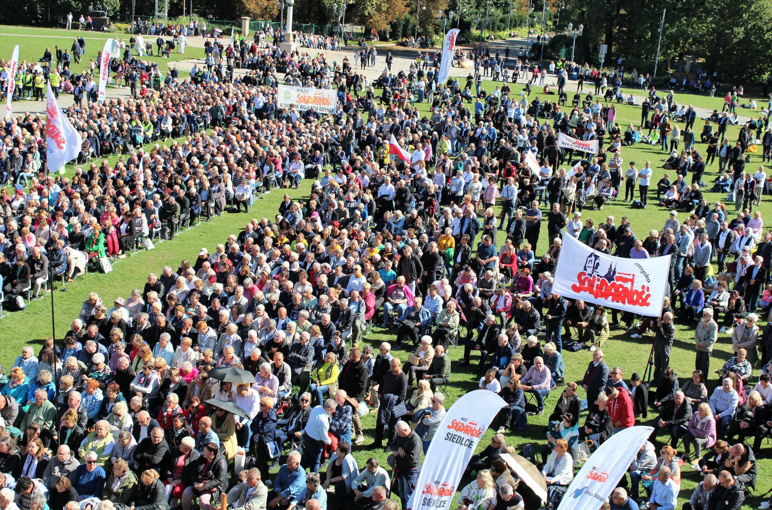 Z kolei przewodniczący Komisji Krajowej NSZZ „Solidarność” Piotr Duda podkreślił, że pielgrzymi przybyli, by podziękować za otrzymane łaski, prosić o dalsze błogosławieństwo, a także o rychłą kanonizację błogosławionego patrona Solidarności. – Dzisiejsza Pielgrzymka to przede wszystkim modlitwa, ale także nasza manifestacja. Chcemy głośno mówić na całą Polskę, że jesteśmy katolikami, ludźmi wiary, i głośno o tym mówmy, nie wstydźmy się tego! Ta pielgrzymka to realizacja testamentu błogosławionego księdza Jerzego, który podkreślał, że dla niego człowiek jest najważniejszy. Ks. Jerzy pozostawił po sobie „mocny fundament”, a członkowie Solidarności starają się każdego dnia budować w swoich sercach trwały pomnik tego niezwykłego kapłana -powiedział przewodniczący „Solidarności”.