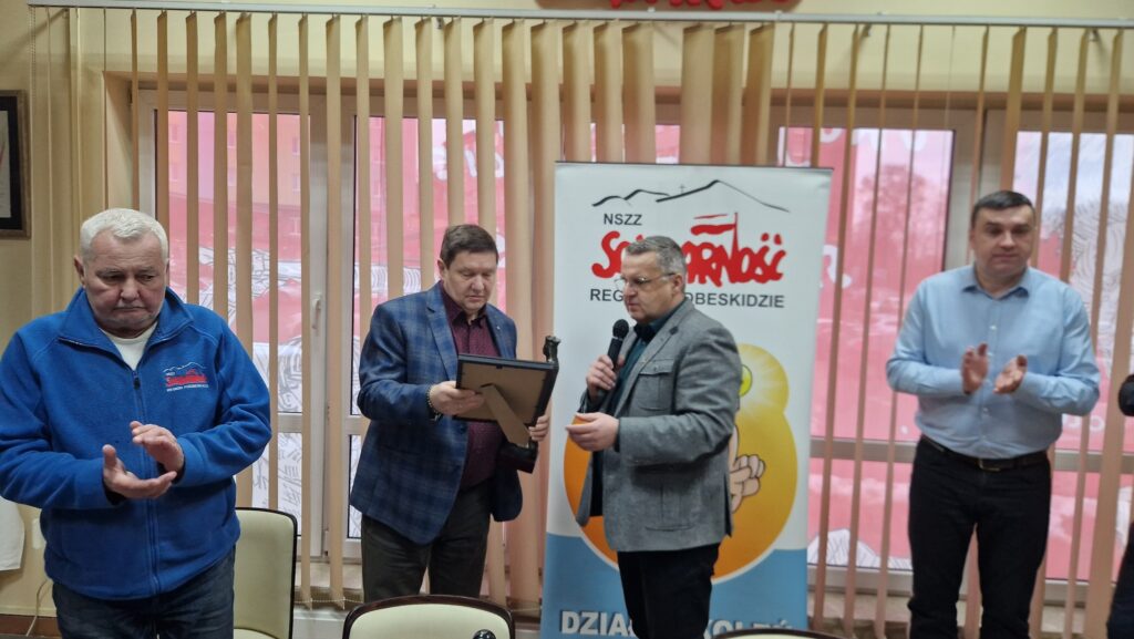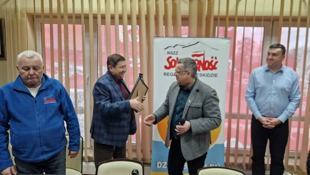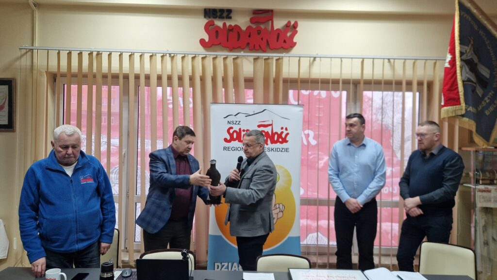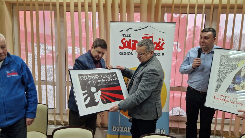 Podczas spotkania Przewodniczący PGS Grzegorz Babij przekazał na ręce Przewodniczącego Zarządu Regionu wyjątkową statuetkę św. Barbary — patronki górników.