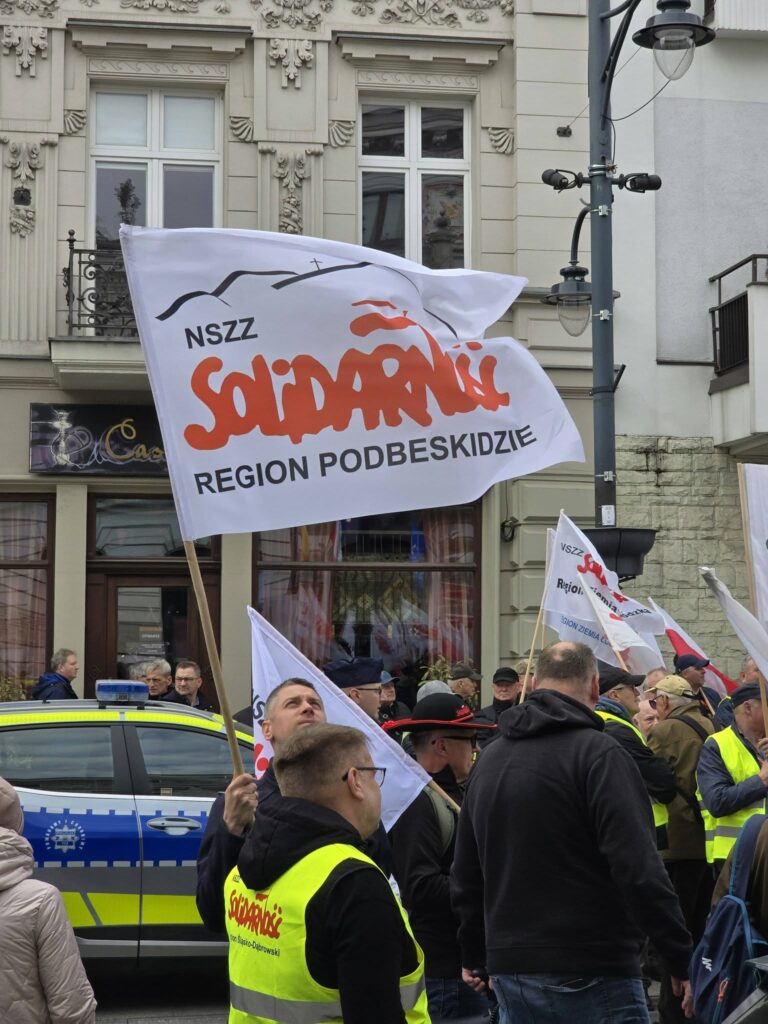 Wśród demonstrantów nie zabrakło również reprezentacji związkowców z regionu Podbeskidzie na czele z wiceprzewodniczącym ZR Andrzejem Kołodziejskim, szefem „Solidarności” Służby Więziennej.
