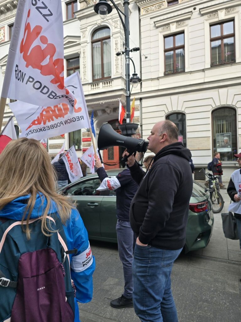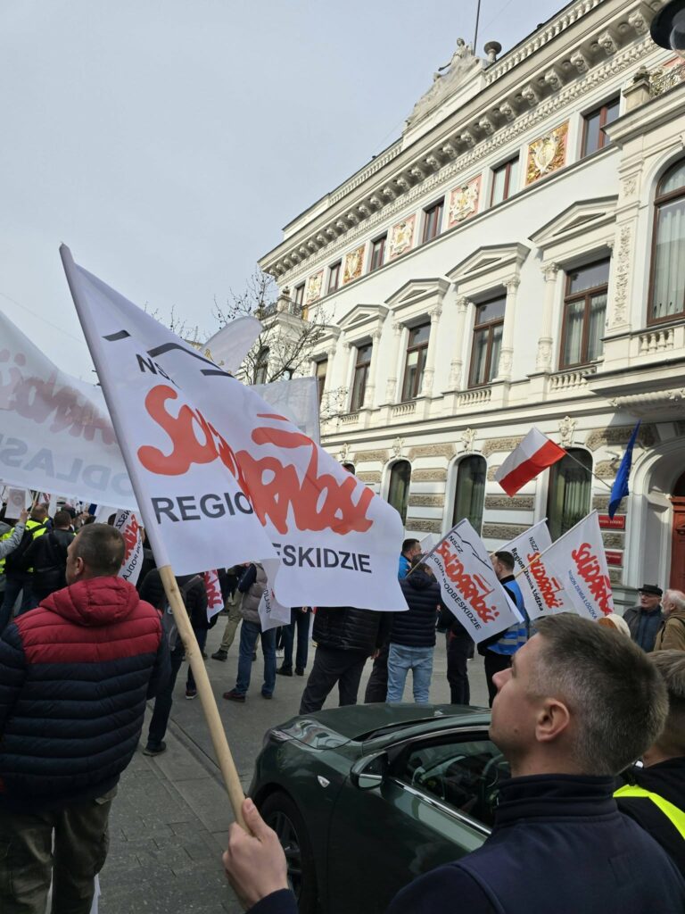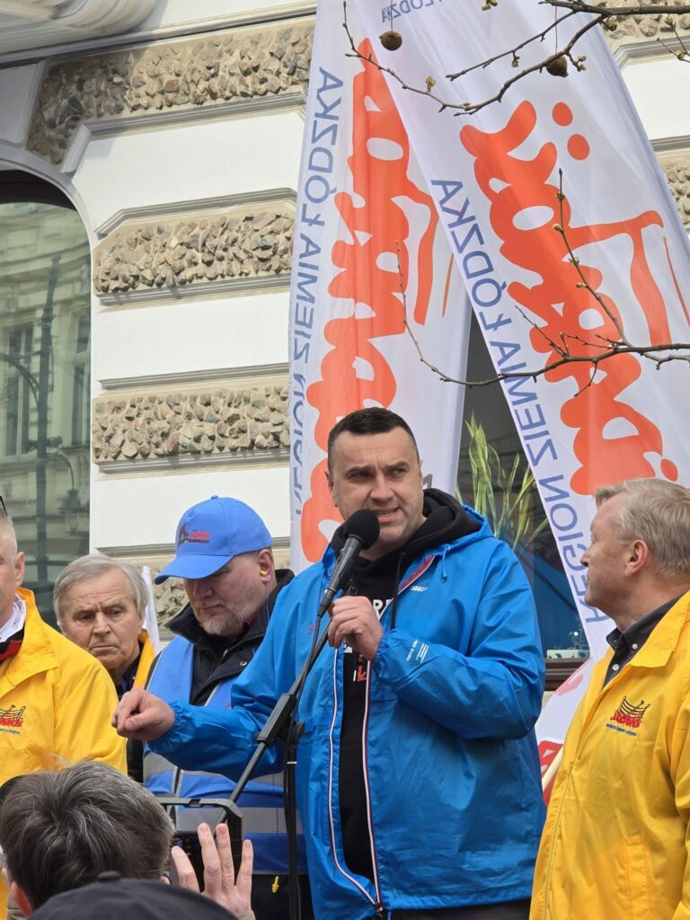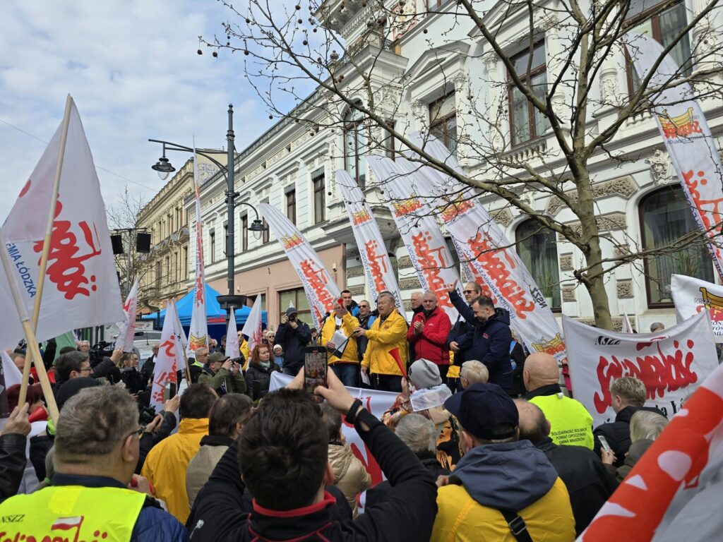 We wtorek 14 kwietnia 2026 roku w Łodzi przedstawiciele Solidarności z całego kraju protestowali przeciwko polityce Zielonego Ładu, systemowi ETS, a także m.in. bezrobociu. W wydarzeniu wziął udział Maciej Kłosiński, zastępca przewodniczącego Komisji Krajowej NSZZ „Solidarność”.