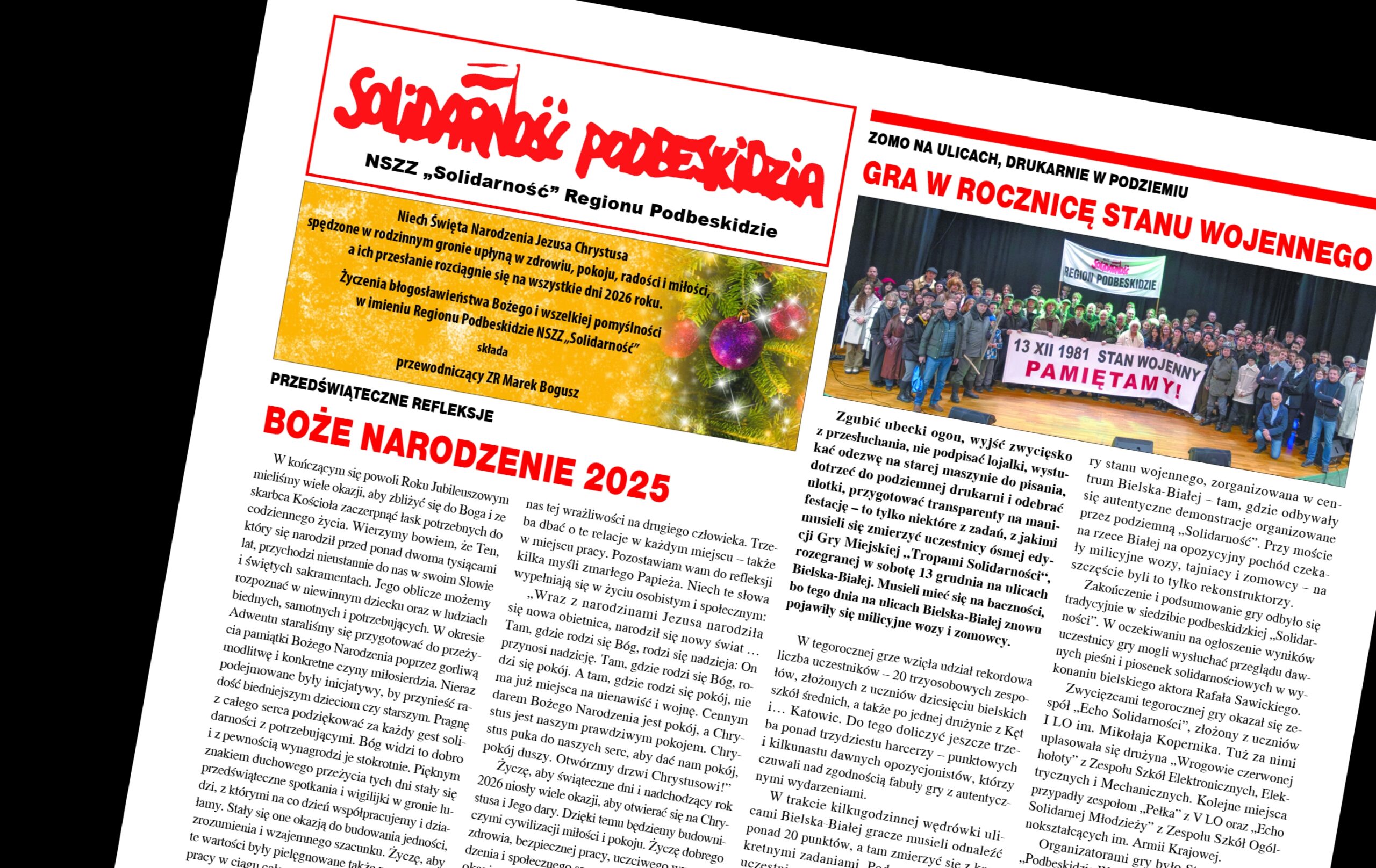 Biuletyn "Solidarność Podbeskidzia" Grudniowa “Solidarność Podbeskidzia” w „Gazecie Beskidzkiej” i w internecie > CZYTAJ CAŁOŚĆ 19 grudnia, 2025