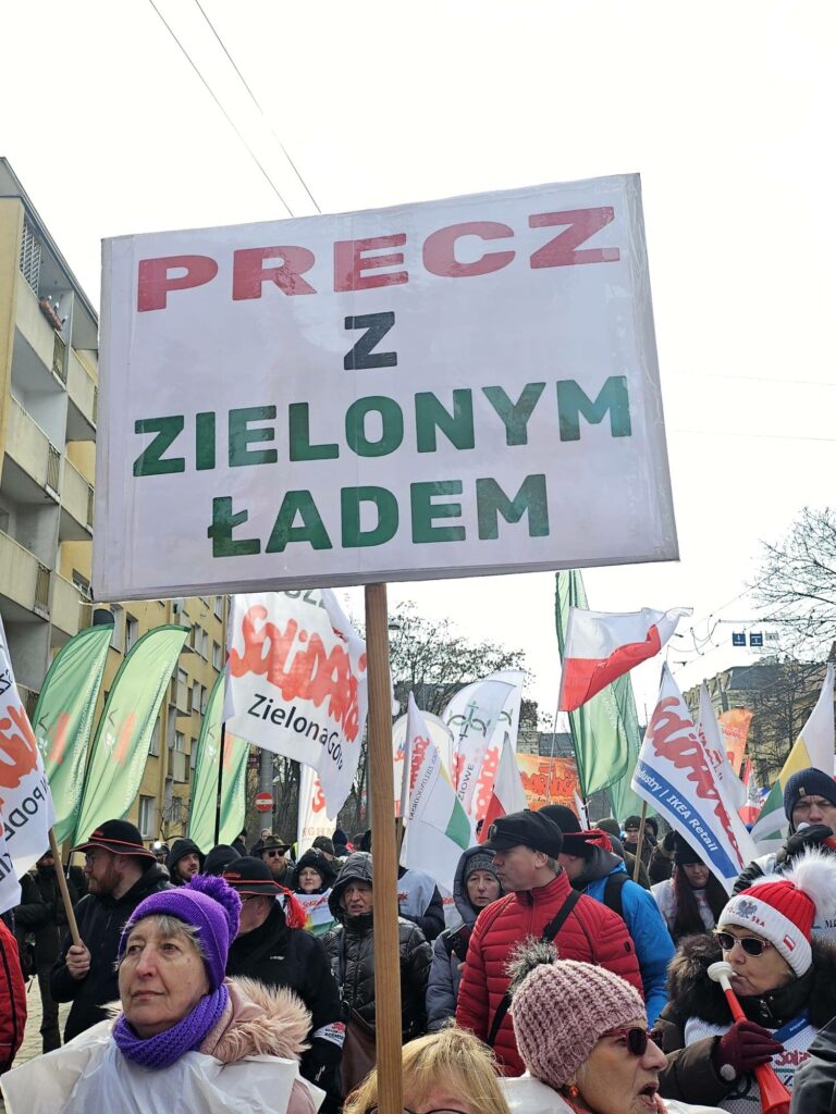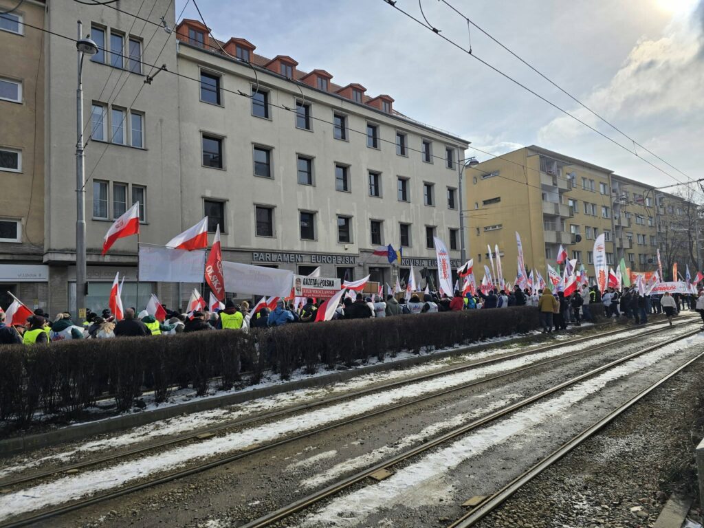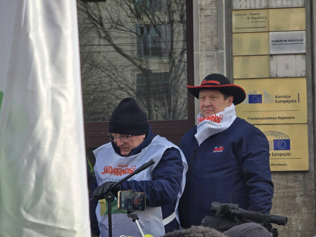 20 lutego (w piątek) we Wrocław odbył się protest zorganizowany przez NSZZ „Solidarność”, wymierzony przeciwko polityce Zielonego Ładu, systemowi handlu emisjami ETS oraz planowanej umowie handlowej z Mercosur. W manifestacji uczestniczyli przedstawiciele struktur związkowych z regionu, a także rolnicy zrzeszeni w NSZZ Rolników Indywidualnych „Solidarność”.