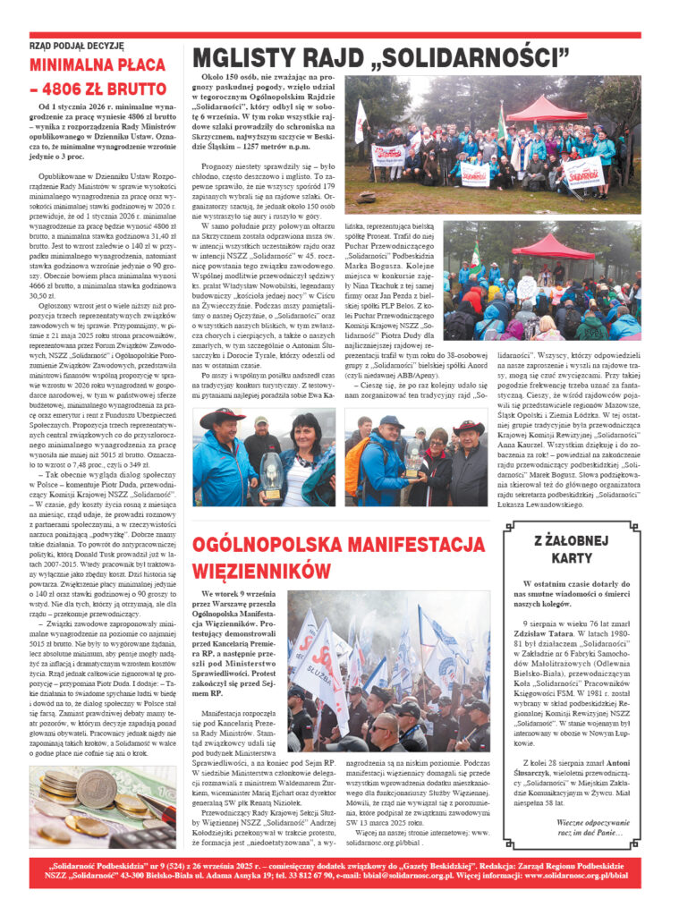 W najnowszym numerze bezpłatnego miesięcznika „Gazeta Beskidzka”, który ukazał się w piątek 26 września 2025 roku, znajdziemy nowy numer „Solidarności Podbeskidzia”, a w nim…