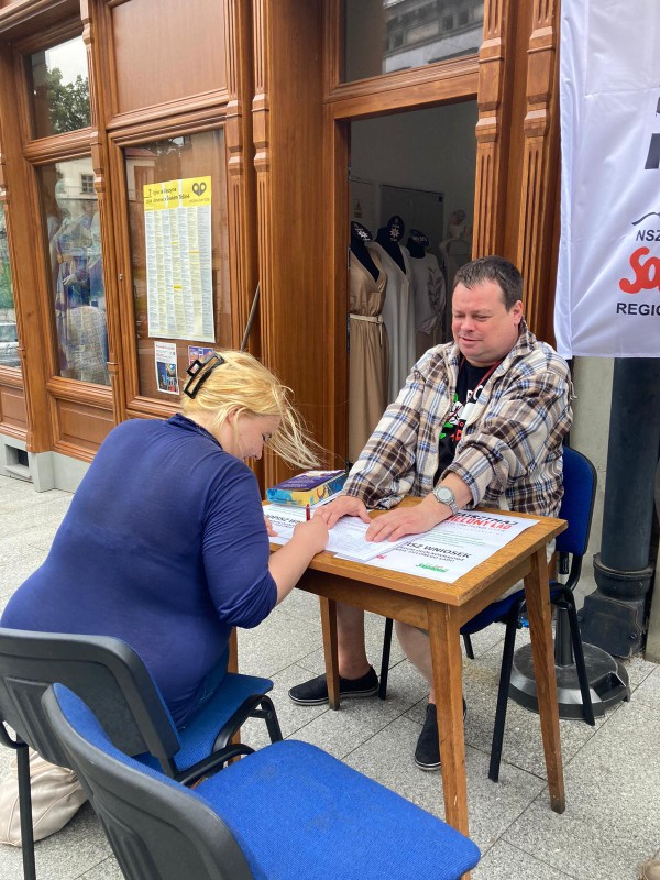 Na Podbeskidziu wniosek o referendum ws. „Zielonego Ładu” można podpisać w zakładowych organizacjach „Solidarności”, w oddziałowych biurach naszego związku oraz w siedzibie Zarządu Regionu. Od początku lipca akcja zbierania podpisów w tej sprawie prowadzona jest także na ulicach naszych miast – niezależnie od pogody i temperatury powietrza! – Chcemy każdemu umożliwić zapoznanie się z naszą akcją i poparcie wniosku w sprawie odrzucenia „Zielonego Ładu”. Dlatego wychodzimy na zewnątrz, na ulice i tym samym docieramy do nowych osób. W ciągu kilku dni w ten sposób uzyskaliśmy poparcie ponad 400 osób – mówi szef podbeskidzkiej „Solidarności”Marek Bogusz, który również zbierał podpisy na bielskim placu Bolesława Chrobrego. Akcja była też prowadzona w pobliżu biur „Solidarności” w Żywcu, Oświęcimiu i Cieszynie.