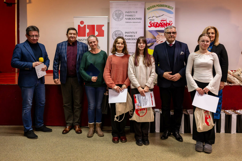 Wszystkim zwycięzcom serdecznie gratulujemy! Otrzymali oni już nagrody, ufundowane przez „Solidarność”, IPN Oddział Katowice oraz gdański Instytut Dziedzictwa Solidarności. W kwietniu br. wezmą oni udział – wraz z dwudziestoma innymi najlepszymi finalistami tego konkursu oraz zwycięzcami Gry Miejskiej „Tropami Solidarności” oraz konkursu plastycznego „Solidarność w oczach młodzieży” – w dwudniowym wyjeździe edukacyjnym na Dolny Śląsk. To specjalna nagroda, ufundowana przez „Solidarność” Regionu Podbeskidzie.