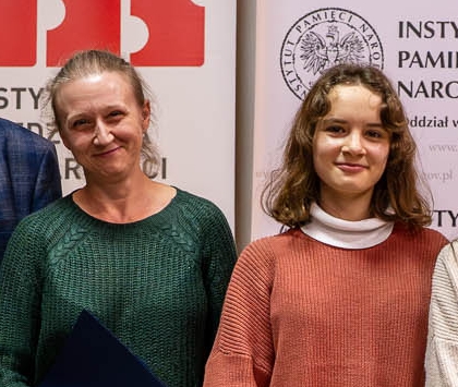 Przypomnijmy: w finale wzięło udział ponad 50 uczniów z szesnastu szkół średnich Bielska-Białej, Cieszyna, Czechowic-Dziedzic i Żywca. Wiemy już, kto najlepiej przebrnął przez finałowy test. Otóż zwyciężczynią tegorocznego konkursu okazała się Antonina Wizner, pierwszoklasistka (!) z I Liceum Ogólnokształcącego im. Mikołaja Kopernika w Bielsku-Białej. Do konkursu przygotowywała ją Pani Anna Bączek, historyk z tej szkoły. Obie są na poniższym zdjęciu.