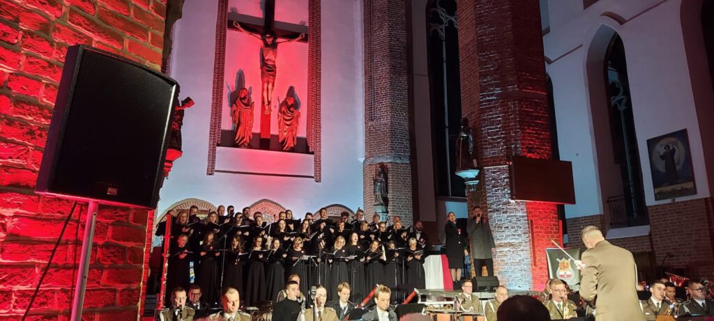 Delegacja uczestniczyła również w przepięknym koncercie „Ścieżki Niepodległości” w katedrze pw. św. Mikołaja w Elblągu, w wykonaniu orkiestry wojskowej, chóru Cantata oraz solistów.