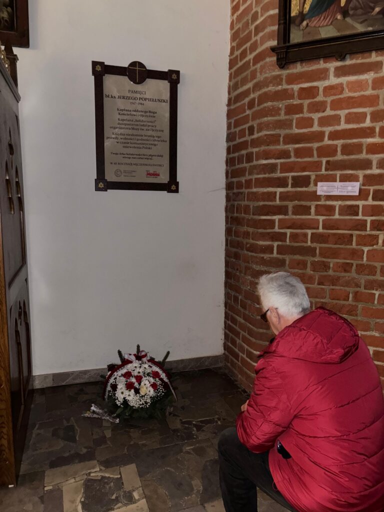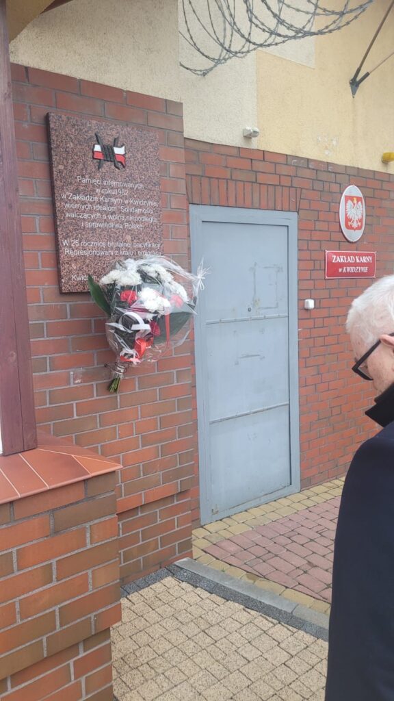 W Kwidzynie obchody tej rocznicy miały szczególnie symboliczny charakter. Przedstawiciele Regionu Elbląskiego NSZZ „Solidarność” – przewodniczący Regionu Zbigniew Koban oraz Katarzyna Cichy i Wiesław Maj – złożyli kwiaty pod tablicą upamiętniającą internowanych w 1982 roku, znajdującą się przy Zakładzie Karnym w Kwidzynie. To miejsce przypomina o losach działaczy „Solidarności”, którzy za wierność ideałom wolnej, niepodległej i sprawiedliwej Polski zostali uwięzieni i poddani represjom. Kwiaty złożono również pod tablicą poświęconą księdzu Jerzemu Popiełuszce – kapłanowi, który stał się jednym z najważniejszych symboli duchowego oporu wobec komunistycznego reżimu.