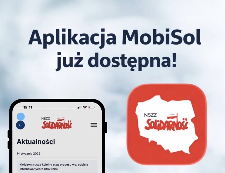 Aplikacja MobiSol już działa! Z radością informujemy, że aplikacja MobiSol dla członków i sympatyków NSZZ „Solidarność” jest już dostępna! To nowoczesne narzędzie, dzięki któremu zawsze pod ręką w twoim telefonie – będziesz na bieżąco z tym, co ważne dla naszej społeczności.…