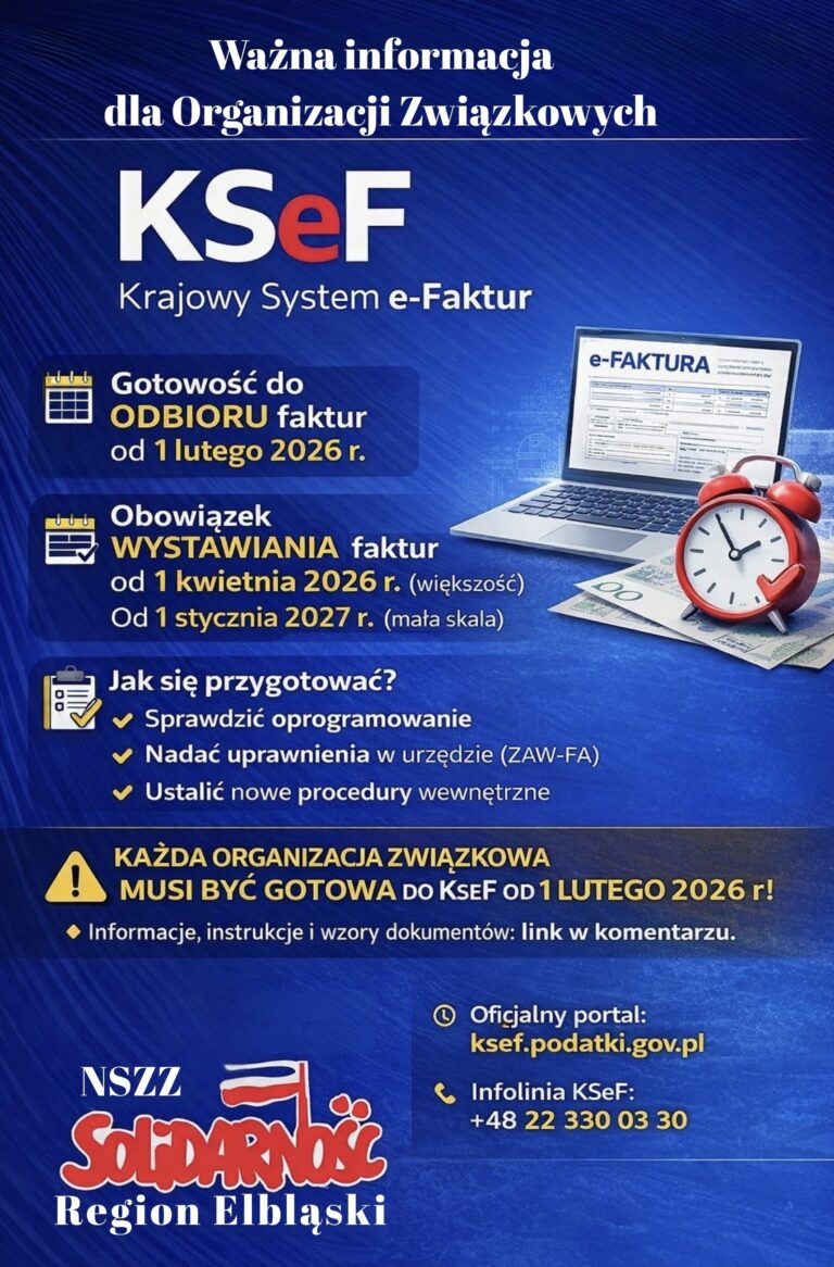 Informacja dla członków – Dyżury Inspektora Pracy Od stycznia 2026 roku w biurze Zarządu Regionu Elbląskiego NSZZ “Solidarność” przy ul. 1 Maja 2 w Elblągu, w każdą ostatnią środę miesiąca, będzie pełniony dyżur inspektora pracy. Pierwszy dyżur odbędzie się 28…