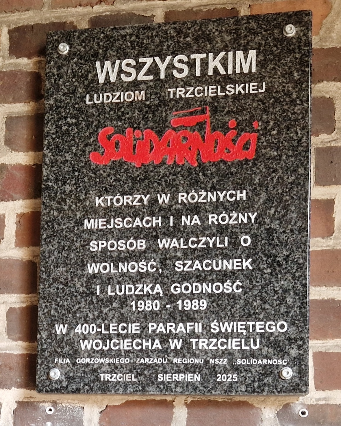 To małe miasto położone tuż przy granicy woj. lubuskiego i wielkopolskiego ma wspaniałą historię, i tę najdawniejszą, i tę najnowszą. W latach 80. prężnie działała tam „Solidarność”, o czym pisał w swoich publikacjach prof. Dariusz Rymar-Dyrektor Archiwum Państwowego w Gorzowie. 5 października odbyły się uroczyste obchody z okazji 45-lecia utworzenia „Solidarności”. Ich elementami było m.in. odsłonięcie tablicy pamiątkowej, a także promocja obszernej książki Hanny Augustyniak pt. „Opowiedzieć Solidarność”. W uroczystości uczestniczył Przewodniczący Zarządu Regionu Gorzowskiego NSZZ „Solidarność” Waldemar Rusakiewicz.