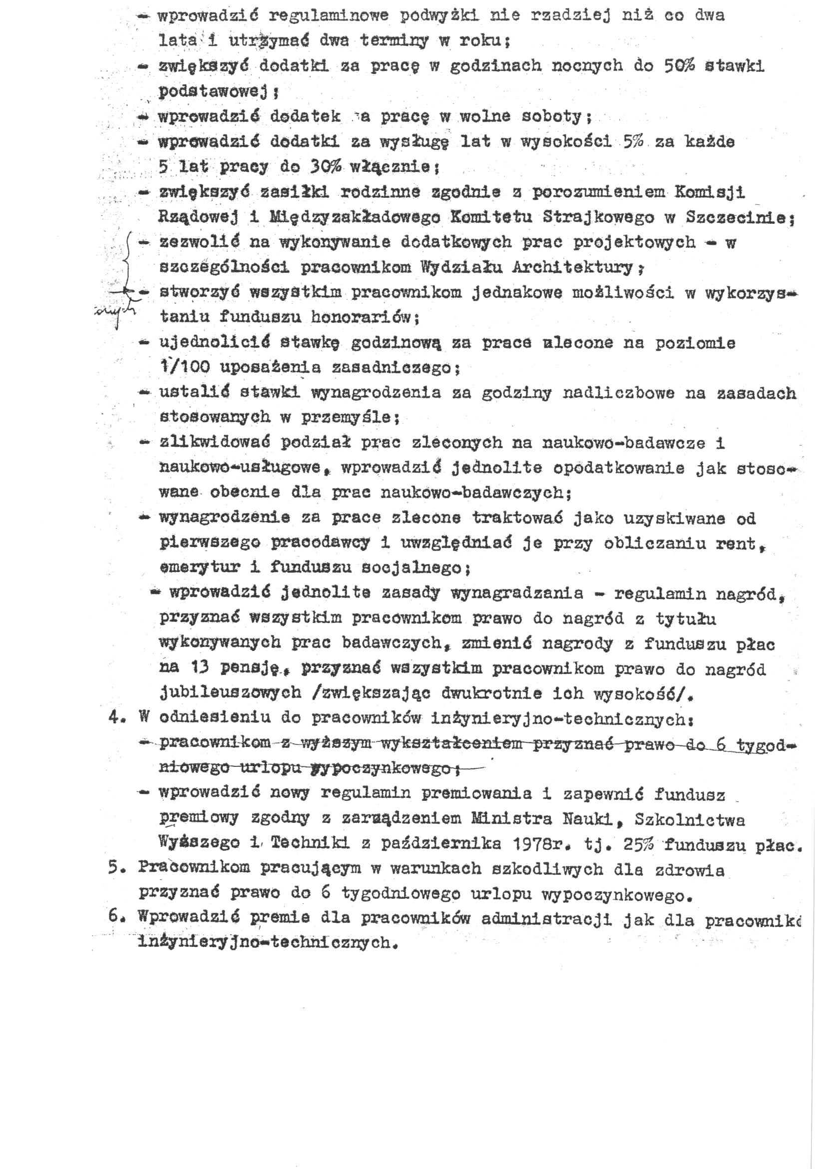 Postulaty Pracowników Politechniki Gdańskiej wręczone Dyrektorowi Departamentu w MNSZWiT Jackowi Kornackiemu w dniu 18 września 1980 r.: