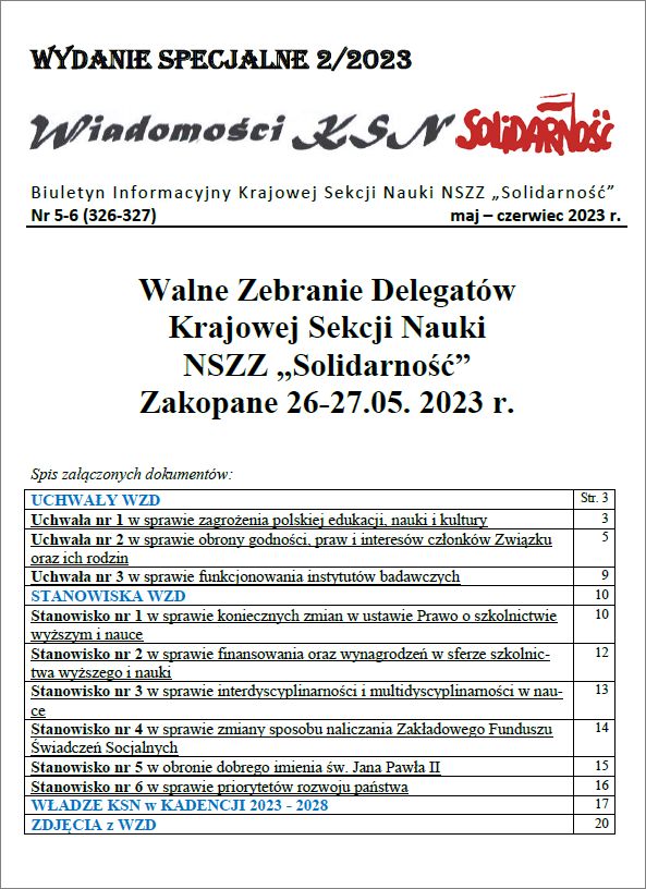 Najnowszy numer Wiadomości KSN 7-8 (328-329) oraz Wiadomości KSN wydanie specjalne 2/2023 są dostępne online. Zachęcamy do lektury.