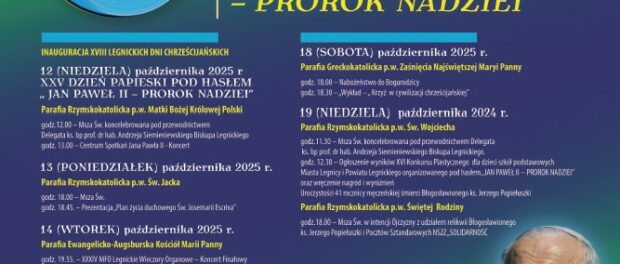 W dniach 12–19 października w Legnicy odbędą się XVIII Legnickie Dni Chrześcijańskie, nad którymi patronat honorowy objął biskup legnicki ks. …Czytaj dalej »