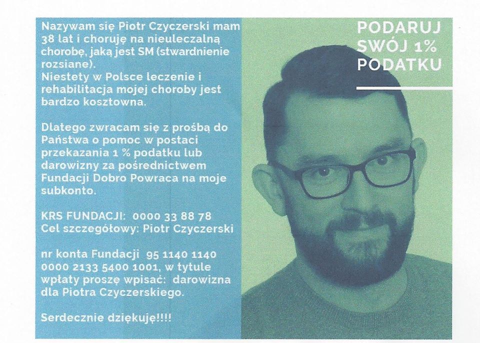 Przewodniczący NSZZ „Soldiarność”  w ZG Rudna apaluje o pomoc dla Piotra Czyczerskiego chorego na stwardnienie rozsiane.