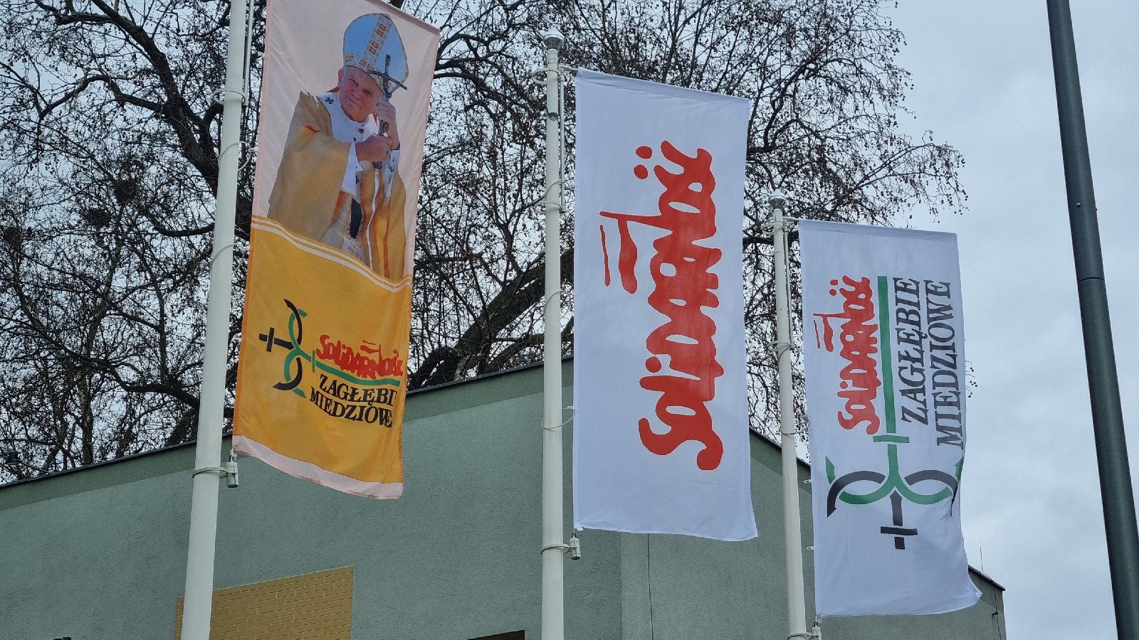 Na maszcie przed siedzibą Zarządu Regionu Zagłębie Miedziowe NSZZ „Soldiarność” zawisł wizerunek Ojca Świętego Jana Pawła II.