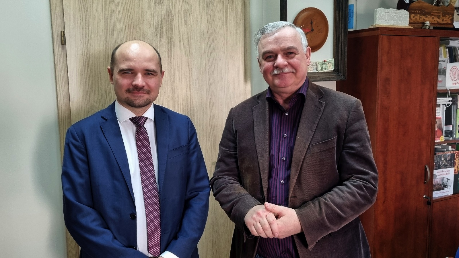 Kamil Dworaczek dyrektor oddziału IPN we Wrocławiu spotkał się w Zarządzie Regionu Zagłębie Miedziowe NSZZ „Soldiarność” z przewodniczącym ZR Bogdanem Orłowskim.