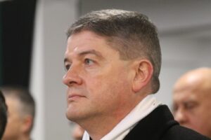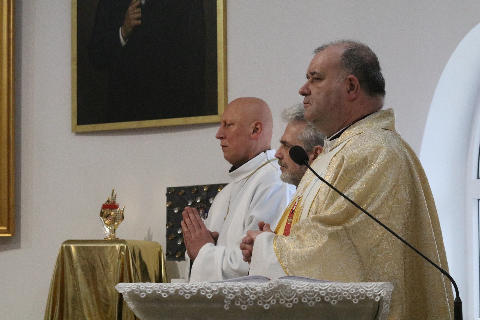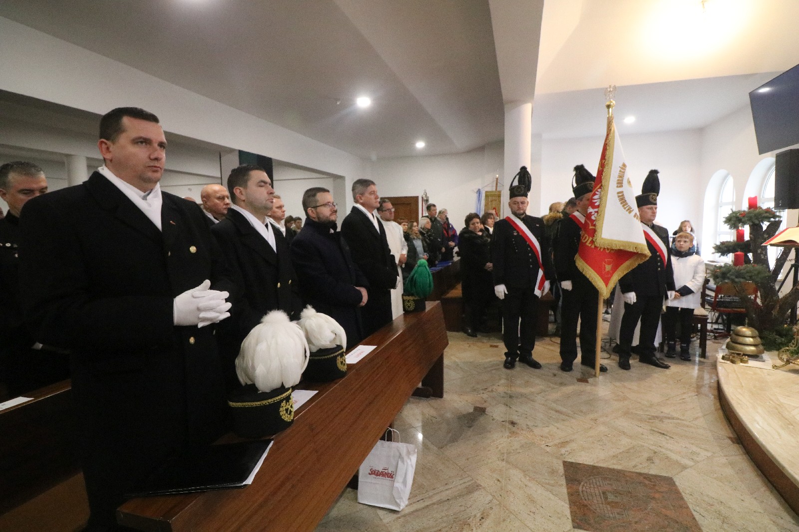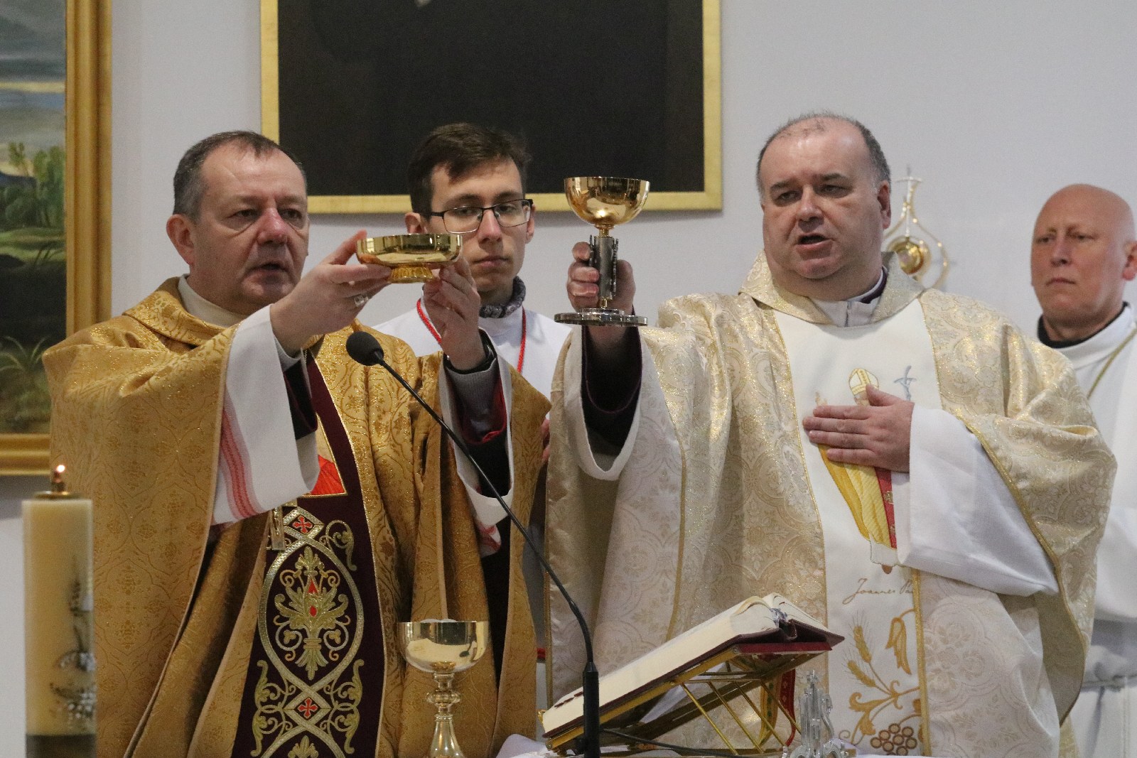 Relikwiarz do ołtarza przyniosła delegacja NSZZ „Solidarność z ZG Rudna: Marcin Kaczanowski przewodniczący KZ NSZZ „Solidarność” w ZG Rudna, Mariusz Piastowski zastępca przewodniczącego w ZG Rudna oraz Franciszek Syposz emeryt.