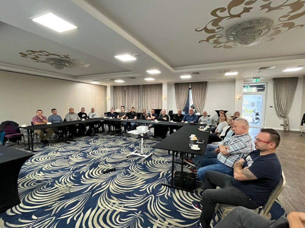 Wojciech Zawadzki, Regionalny Koordynator ds. BHP, przedstawił podstawy prawne oraz metodykę oceny ryzyka zawodowego. Omówił także praktyczne przykłady, wskazując, jak prawidłowo szacować ryzyko na poszczególnych stanowiskach pracy.