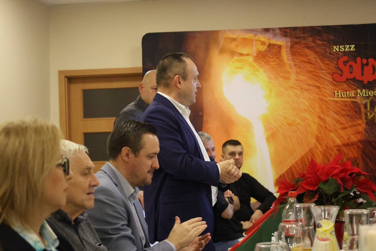 Spotkanie świąteczno–noworoczne Komisji Zakładowej NSZZ „Solidarność”. W wydarzeniu uczestniczyli m.in. przewodniczący Zarządu Regionu Zagłębie Miedziowe NSZZ „Solidarność” Bartosz Budziak, kandydaci do Rady Nadzorczej KGHM – Bogusław Szarek i Marcin Kaczanowski – oraz mecenas Piotr Jóźwiak.