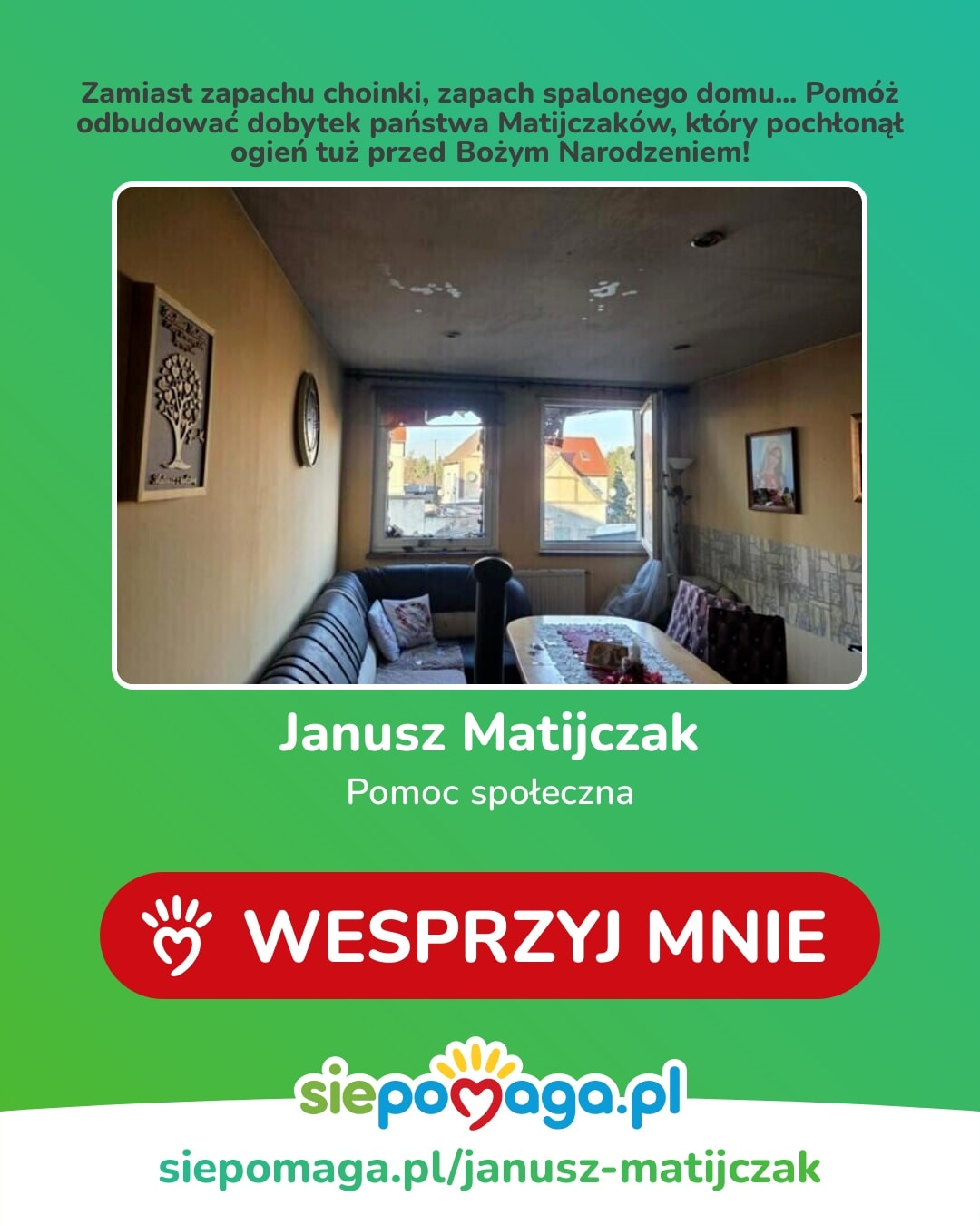 Ta zbiórka to próba przywrócenia im nadziei oraz szansy na powrót do własnego domu, odzyskanie choć odrobiny normalności i poczucia bezpieczeństwa. Prosimy o pomoc, bo każda wpłata to krok w stronę odbudowy nie tylko murów, ale także spokoju wraz z godnością ludzi, którzy w jednej chwili stracili wszystko.