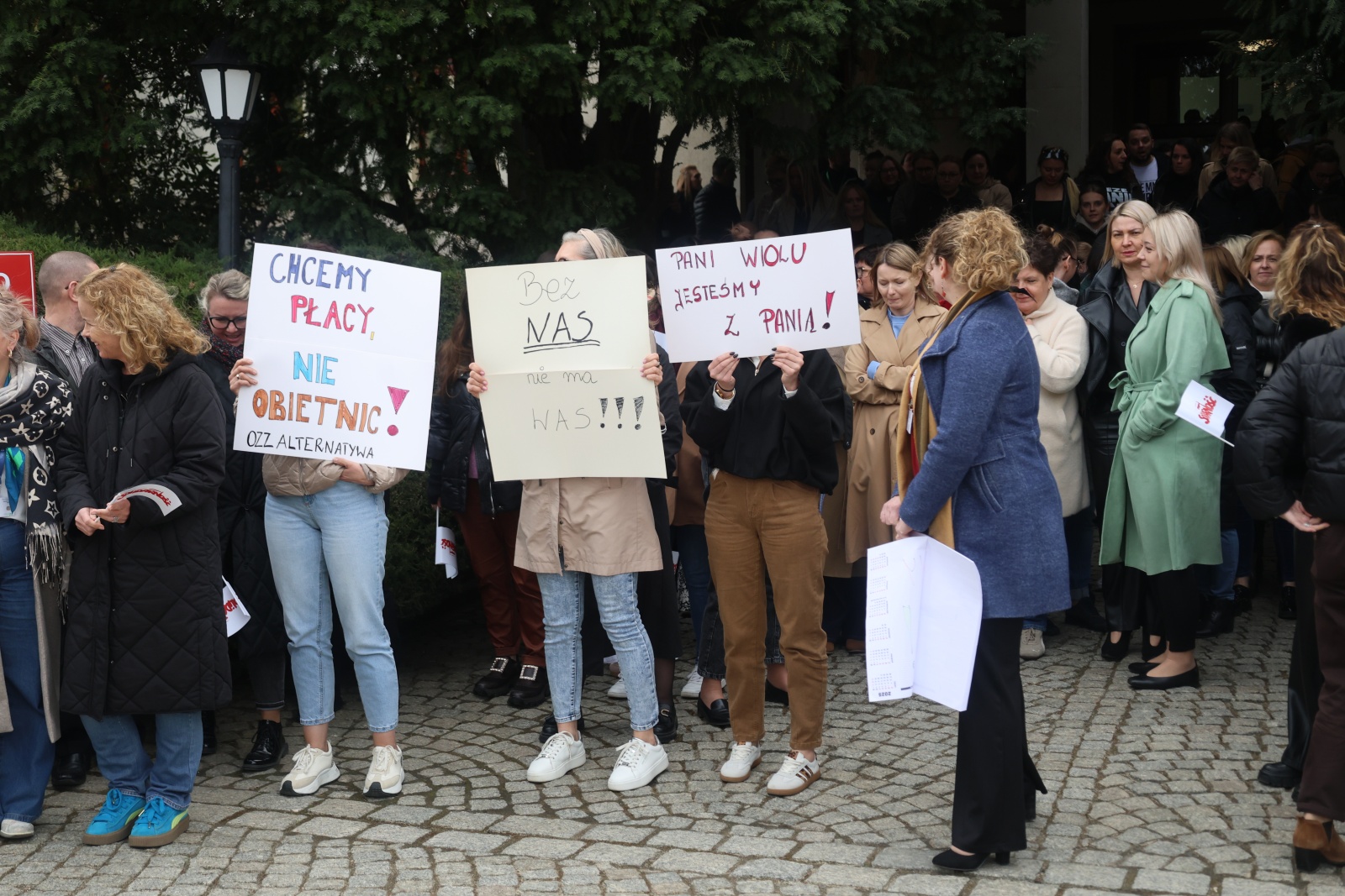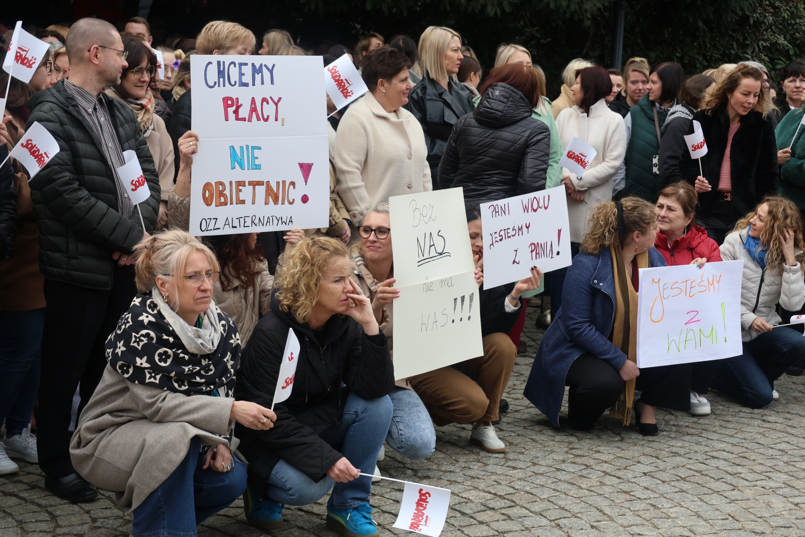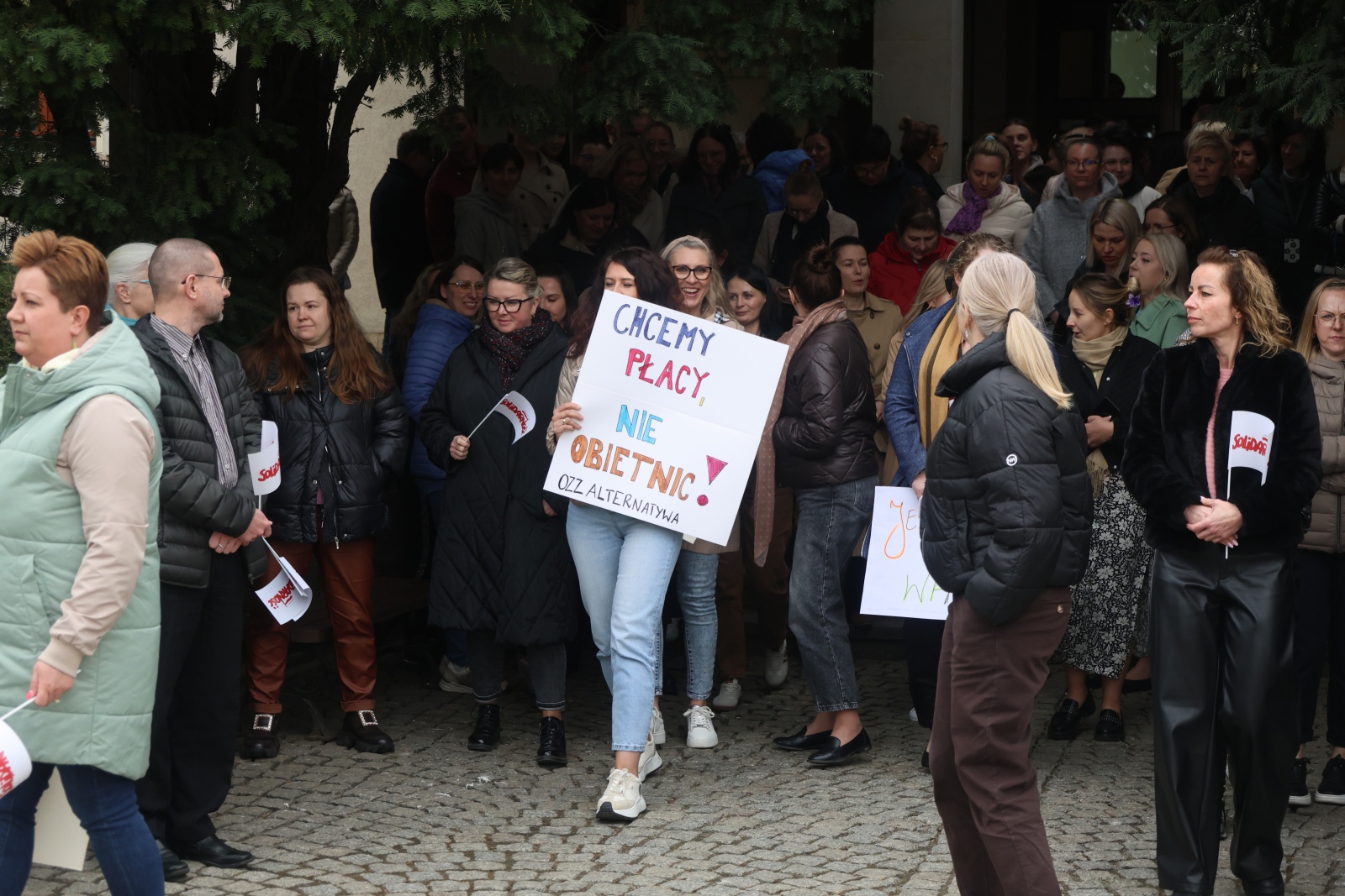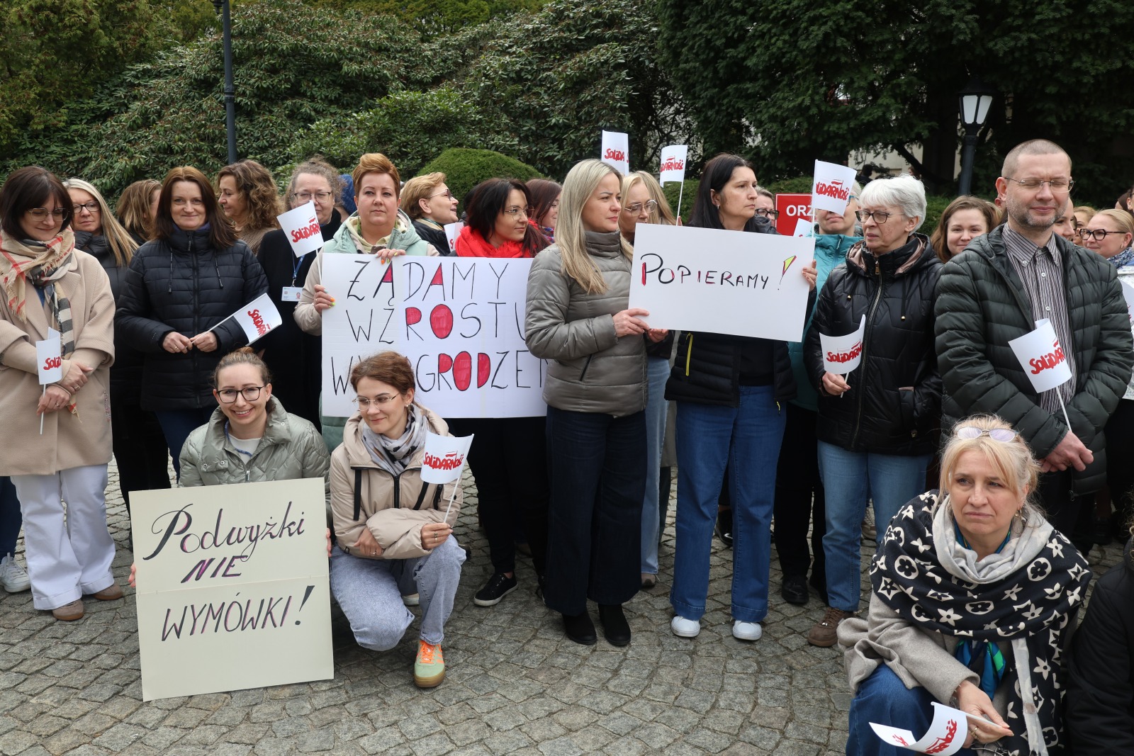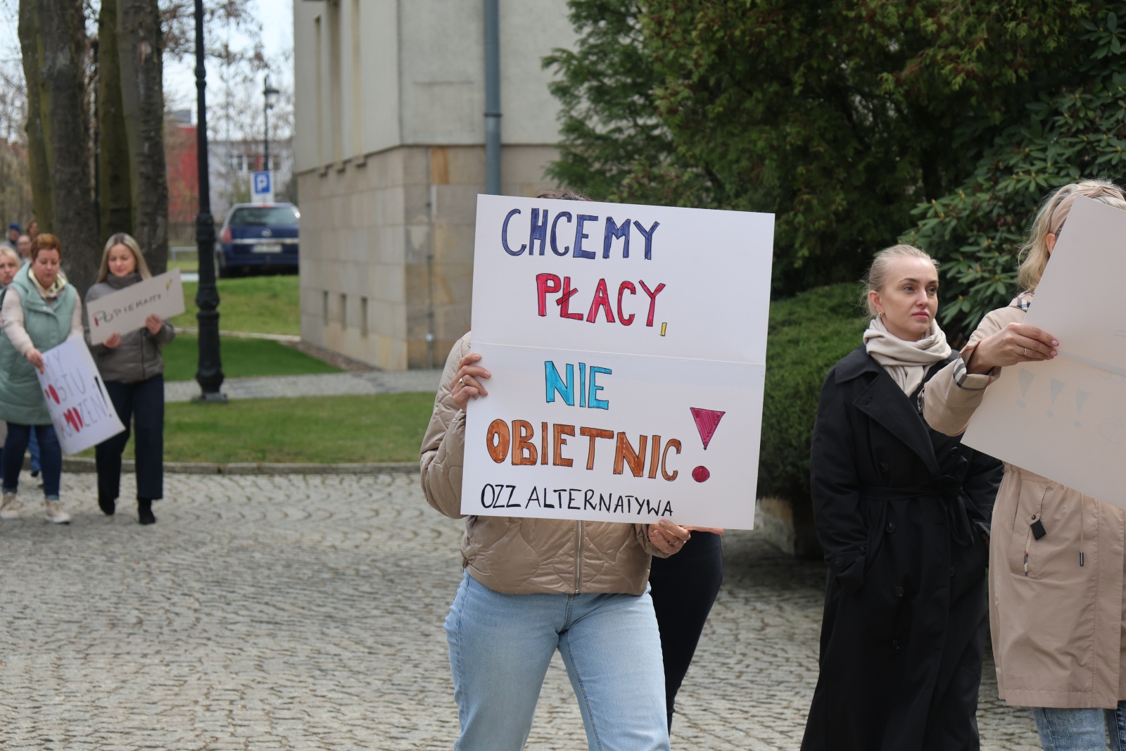 Legniccy urzędnicy manifestują pod siedzibą oddziału