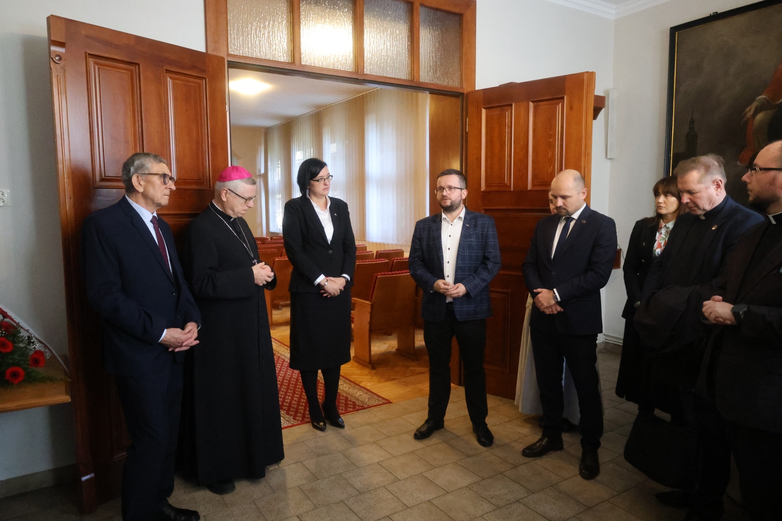 „Cieszę się, że spotykamy się w instytucji, dla której takie wartości jak Bóg, wiara, godność człowieka, prawa pracownicze i pamięć historyczna stanowią fundament wspólnego działania. W osobie błogosławionego księdza Jerzego Popiełuszki dostrzegamy kogoś, kto te wartości nie tylko głosił, ale również żył nimi każdego dnia – aż po męczeńską śmierć.