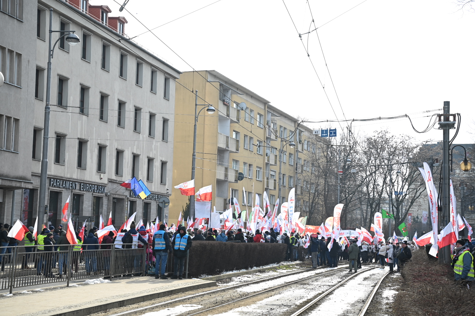 W dniu 20 lutego 2026 r. przed siedzibą Oddziału Biura Informacyjnego Parlamentu Europejskiego we Wrocławiu odbył się protest skierowany przeciwko systemowi ETS/ETS2 oraz umowie Mercosur.