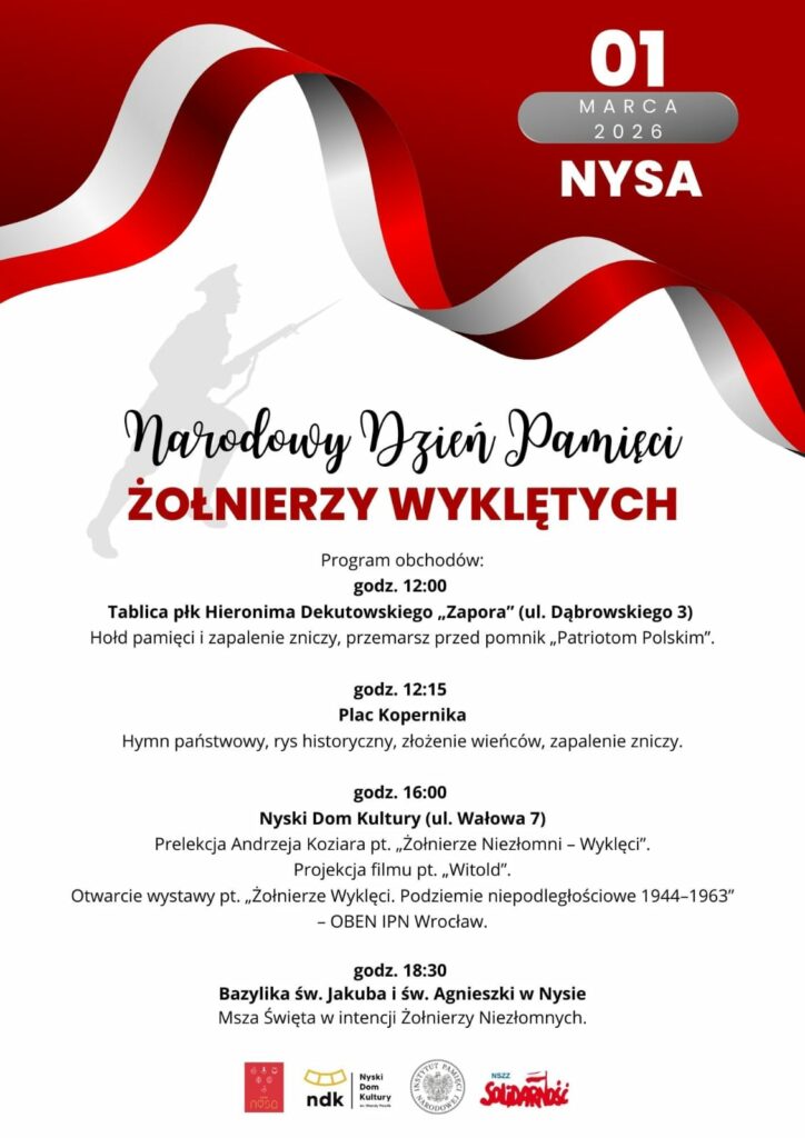 Oddział Zarządu Regionu Śląska Opolskiego NSZZ „Solidarność” w Nysie zaprasza do udziału w uroczystych obchodach Narodowego Dnia Pamięci Żołnierzy Wyklętych, które odbędą się 1 marca 2026 r.