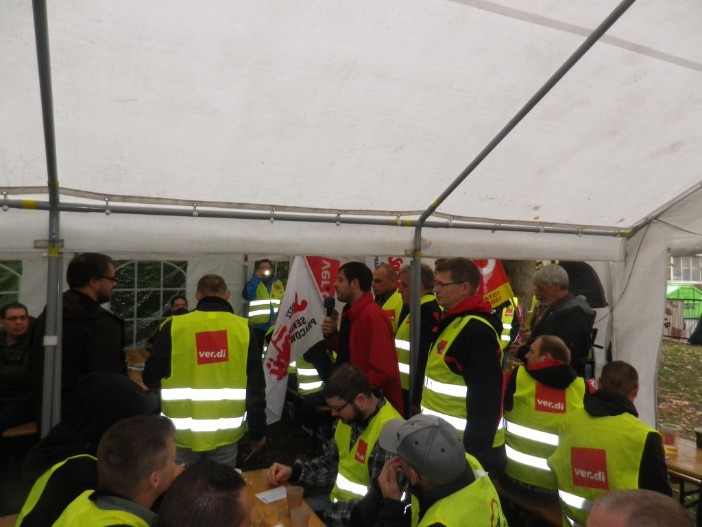 – Zwracamy się do Was z pozdrowieniem od „Solidarności” z Polski, wyrażając nasze poparcie. Jesteśmy pod wrażeniem waszych działań, tak skutecznego upominania się o poprawę warunków pracy i płacy. Mam nadzieję, że pracownicy w Polsce w niedługim czasie podejmą podobne działania i upomną się o lepsze warunki pracy, gdyż w magazynach w naszym kraju są one nieporównywalnie gorsze. Nasi pracownicy pracują za 3,5 euro zaś w Niemczech pracownik zarabia prawie czterokrotnie więcej za tą samą pracę – mówił do strajkujących w Lipsku pracowników Alfred Bujara, przewodniczący „Solidarności” handlu. O warunkach pracy i organizowania się w związki zawodowe w Polsce mówił przewodniczący Organizacji Zakładowej Grzegorz Cisoń.