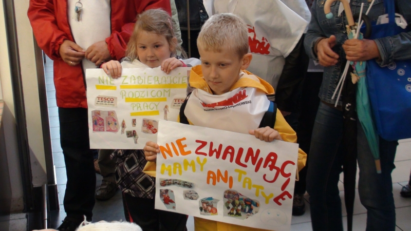 Akcja protestacyjna przed Silesia City Center nieprzypadkowo została zorganizowana w dzień dziecka. W pikiecie uczestniczyły dzieci pracowników, które przygotowały laurki z napisami „Nie zwalniajcie mamy ani taty”, „Nie zabierajcie rodzicom pracy”. Związkowcy zamierzali wręczyć laurki dyrekcji katowickiego marketu Tesco. – Niestety pani menadżer chociaż początkowo zapewniła że znajdzie chwile czasu, ostatecznie odmówiła wyjścia do nas. Dzieci zostawiły więc laurki w punkcie obsługi klienta – mówi Mirosław Grzywa, członek Zarządu Regionu Śląsko-Dąbrowskiego NSZZ Solidarność.