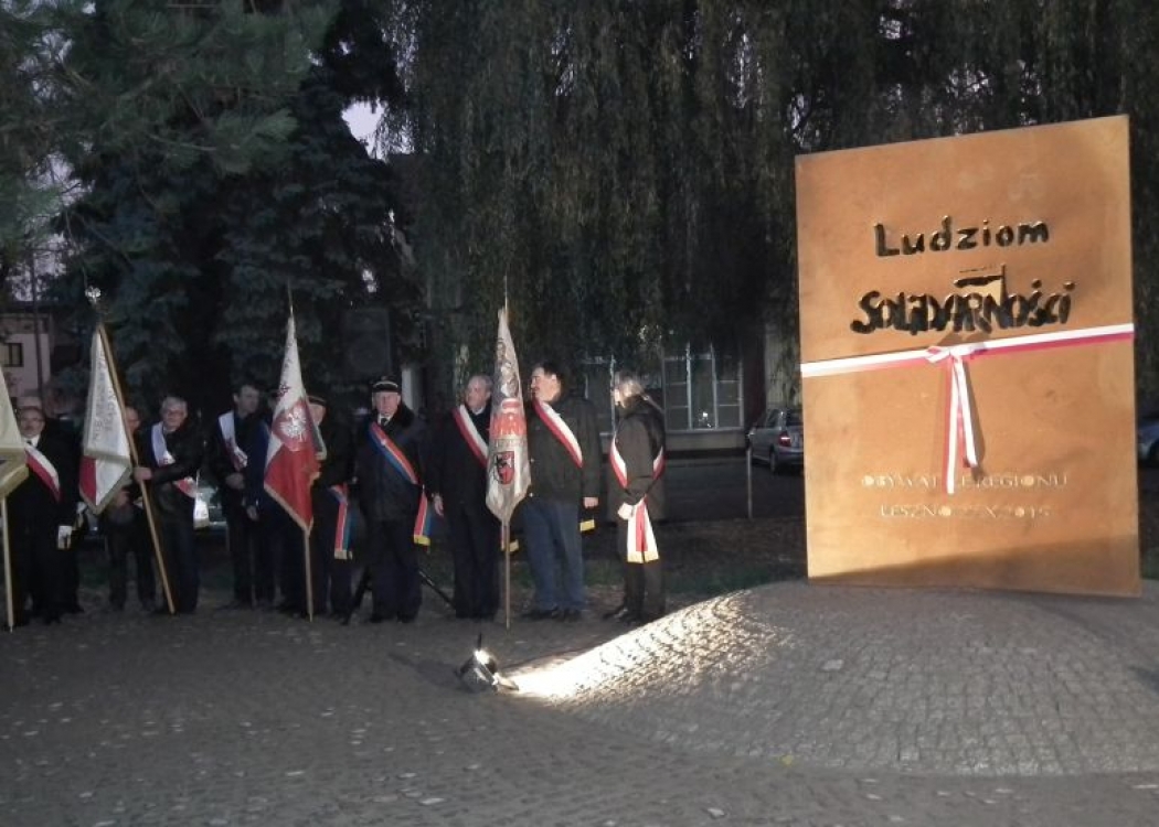 Pomnik powstał z inicjatywy leszczyńskiej "Solidarności". Jest to wielka stalowa płyta z napisem: Ludziom Solidarności Obywatele Regionu Leszno 27 X 2015