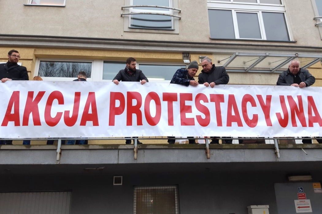 Akcja potrwa do piątku. Budynek został oflagowany i oplakatowany, w środku członkowie związku rozdają ulotki informacyjne.