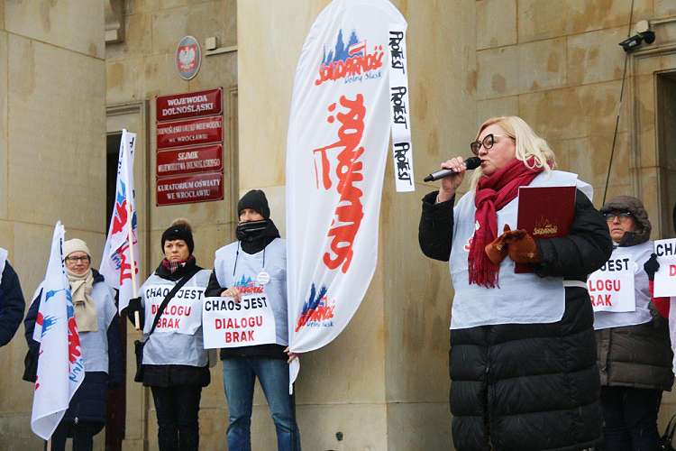 Pogłębiający się chaos w szkolnictwie i brak systemowych rozwiązań dotyczących zwiększenia finansowania oświaty – na te problemy zwracali uwagę przedstawiciele oświatowej Solidarności podczas pikiety zorganizowanej 26 listopada przed Dolnośląskim Kuratorium Oświaty we Wrocławiu.