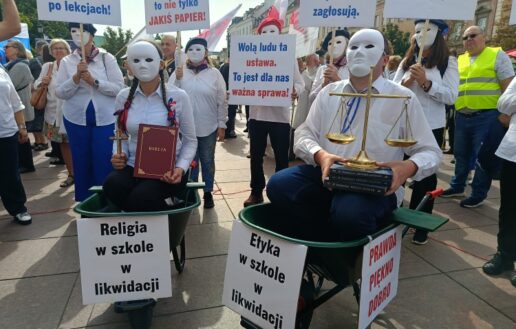 W Warszawie na Placu Zamkowym w sobotę odbyła manifestacja zorganizowana pod hasłem „Stop likwidacji polskiej edukacji”. Oświatowa Solidarność i stowarzyszenia broniące polską szkołę przed ideologizacją protestowały przeciw zmianom wprowadzanym przez MEN. „Ochrona godności nauczycieli i ich zdrowia” Przewodniczący Krajowej Sekcji Oświaty i Wychowania NSZZ „Solidarność”, Waldemar Jakubowski mówił do zebranych: Powinniśmy dążyć do polskiego obszaru edukacji, to propozycja pana prof. Jana Żaryna powinna być odpowiedzią na pomysły tzw. europejskiego obszaru edukacji. … Czytaj dalej „Stop likwidacji polskiej edukacji”. Taczka dla Nowackiej