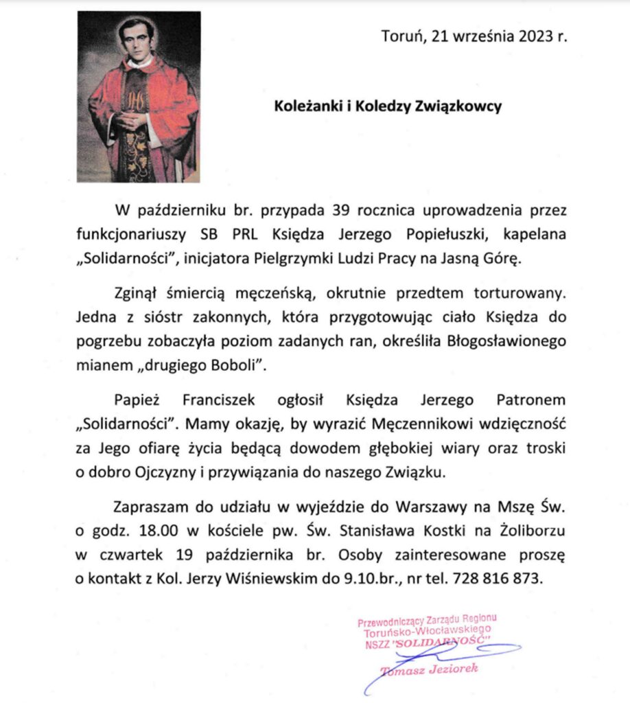 Zarząd Regionu Toruńsko-Włocławskiego NSZZ "Solidarność", ul. Piekary 35/39, 87-100 Toruń