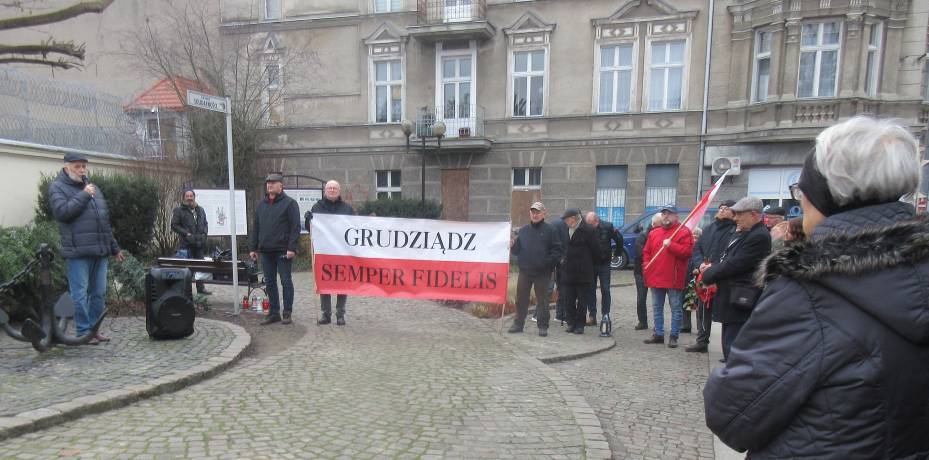 Po odśpiewaniu Hymnu Państwowego kol. Adam Ronowski przypomniał sylwetki grudziądzkich działaczy opozycji, którzy w sposób do dziś niewyjaśniony stracili życie w stanie wojennym. Pierwszy przewodniczący NSZZ” Solidarność” Podregionu Grudziądz – Jerzy Przybylski, analizując ostatnie wydarzenia w kraju zauważył, że jego zdaniem „stan wojenny trwa nadal, a zbrodnie komunistów nadal są nierozliczone”.