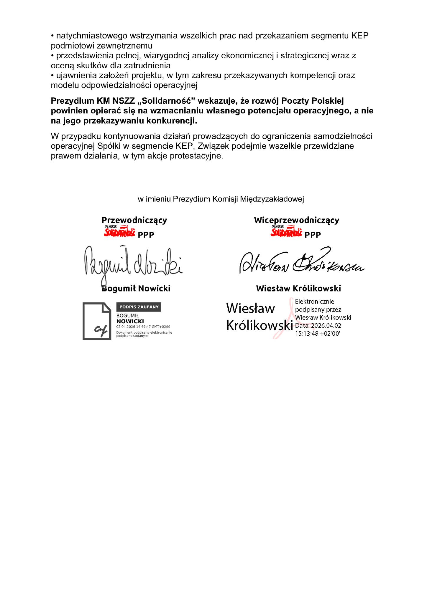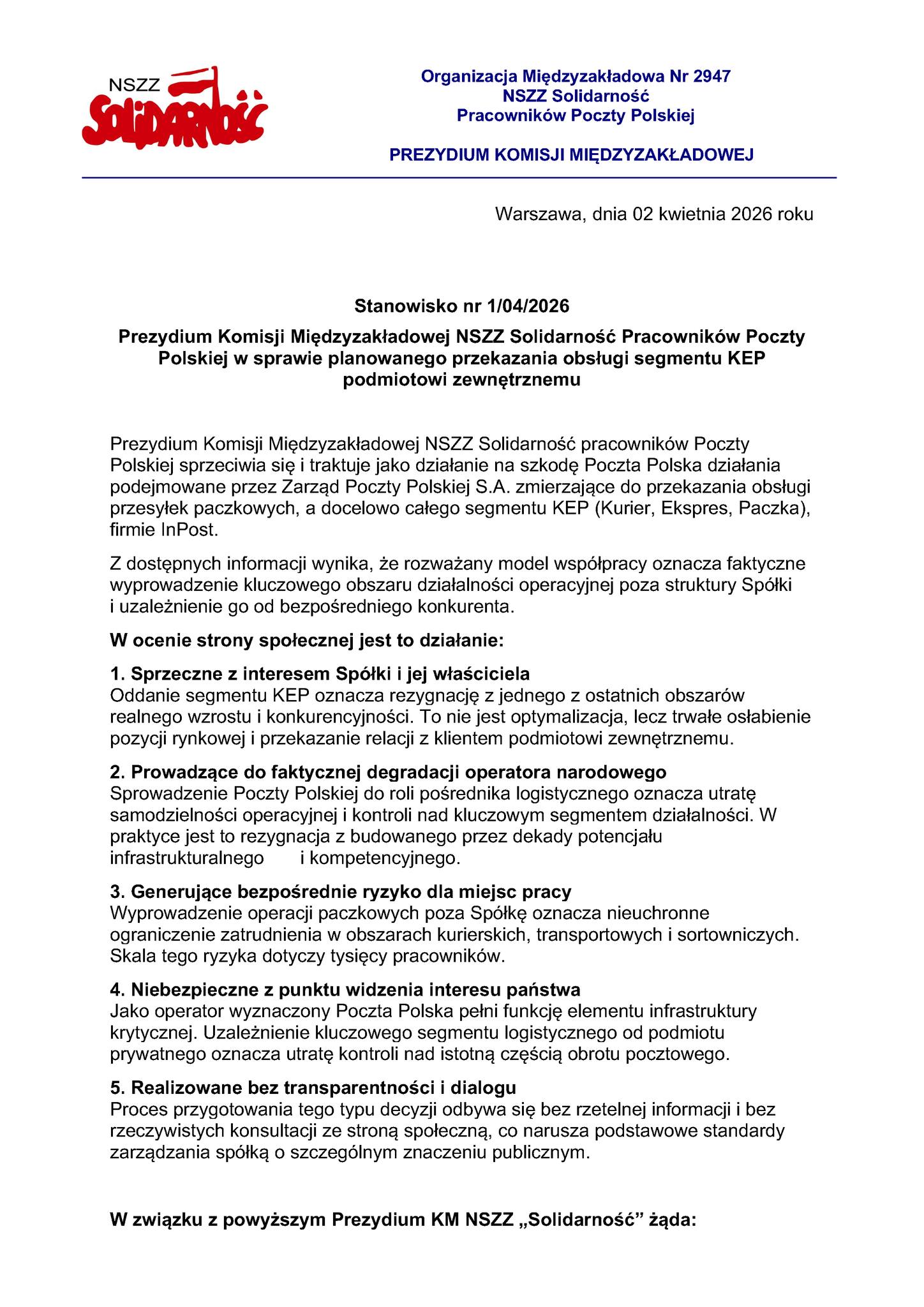Takie decyzje nie mogą zapadać bez jasnych analiz, bez transparentności i bez rozmowy ze stroną społeczną.