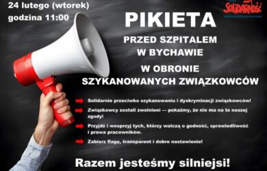 Związkowcy z „S” będą pikietowali przed siedzibą szpitala w Bychowie