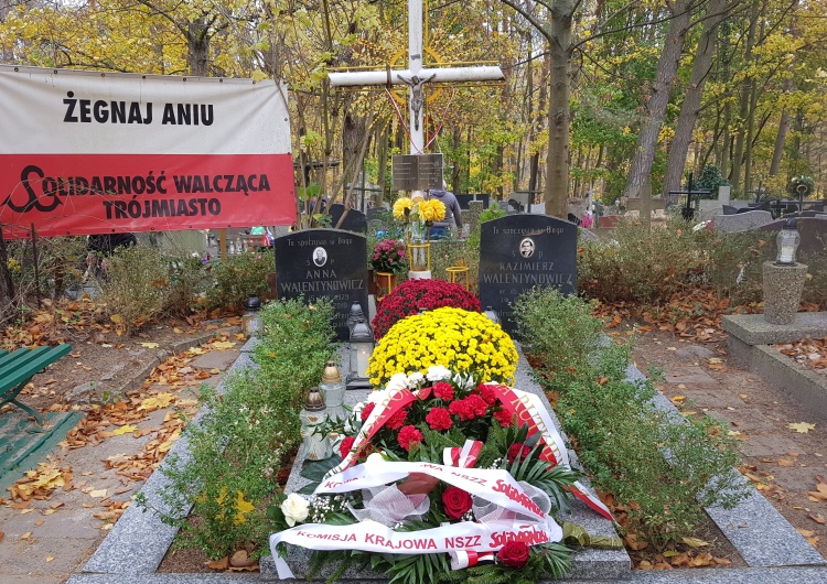 Ostatnim miejscem pochówku, na którym został złożony wieniec Solidarności był grób Anny Walentynowicz – współzałożycielki Wolnych Związków Zawodowych; suwnicowej, dla której w sierpniu 1980 roku stanęła Stocznia Gdańska. Pierwszym postulatem strajkujących robotników było wtenczas przywrócenie do pracy Anny Walentynowicz, zwolnionej zaledwie pięć miesięcy przed osiągnieciem wieku emerytalnego. Była internowana w trakcie stanu wojennego, a po zabójstwie bł. ks. Jerzego Popiełuszki zainicjowała protest głodowy. Straciła życie 10 kwietnia 2010 roku w katastrofie smoleńskiej.