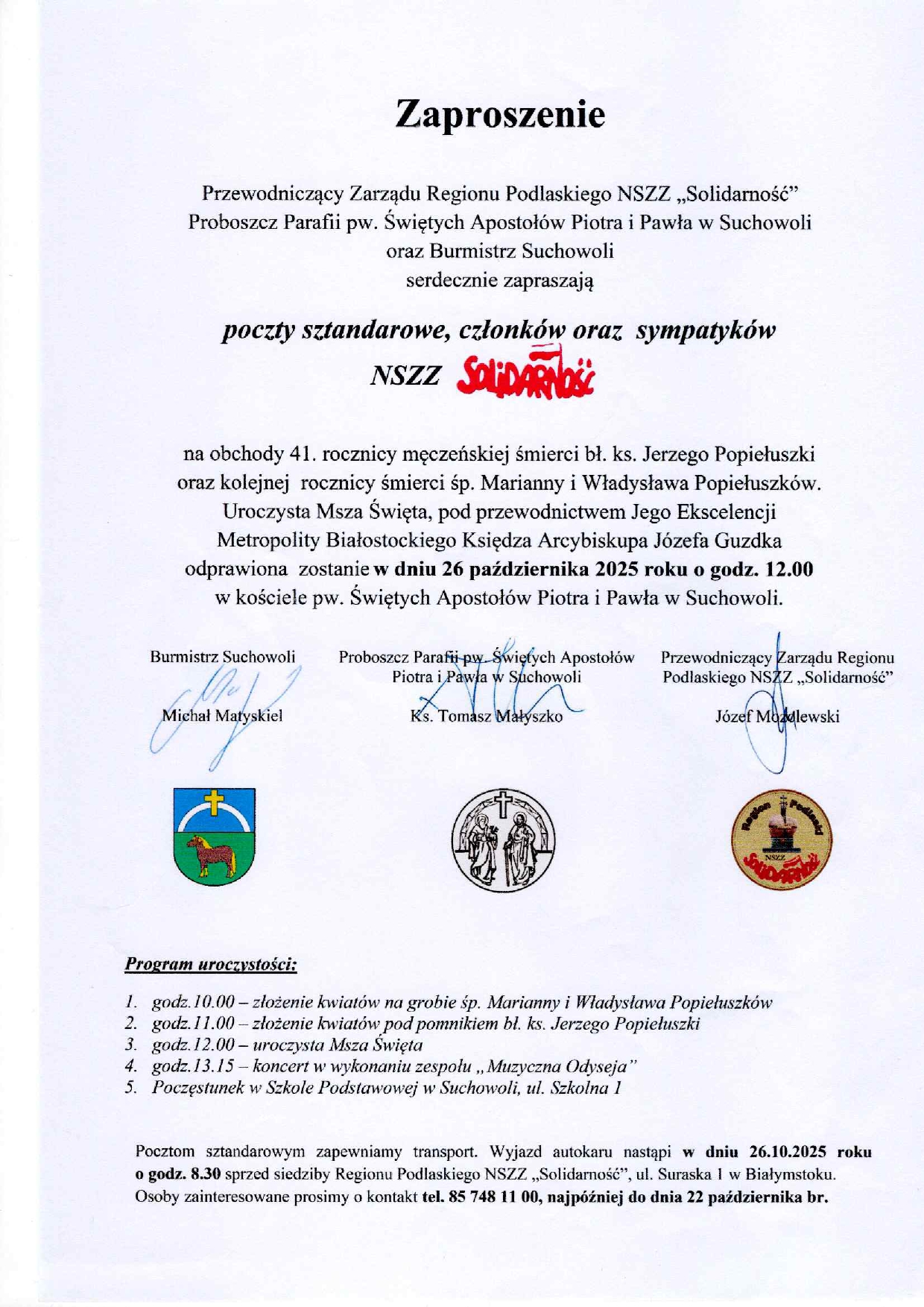 Zapraszamy na obchody 41. rocznicy męczeńskiej śmierci bł. ks. Jerzego Popiełuszki oraz kolejnej rocznicy śmierci Marianny i Władysława Popiełuszków.